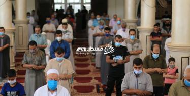 المواطنون في مخيم البريج يصلون الجمعة لأول مرة منذ أكثر من 40 يوماً بسبب انتشار وباء كورونا في قطاع غزة