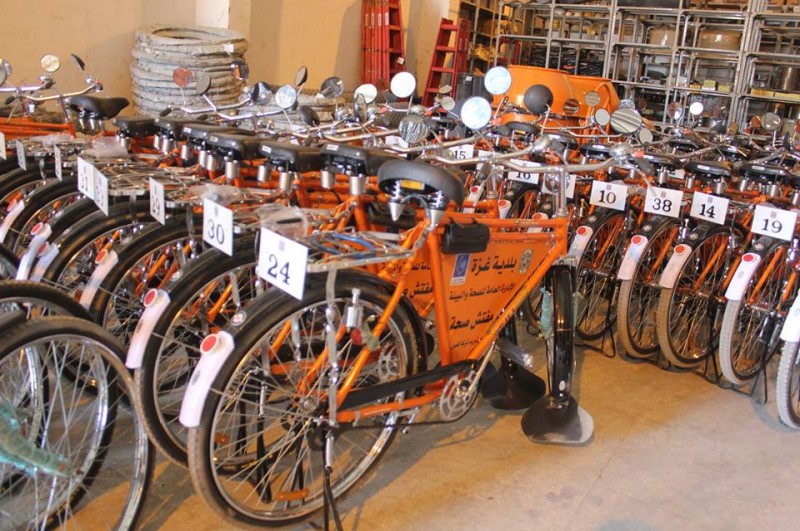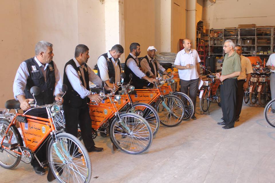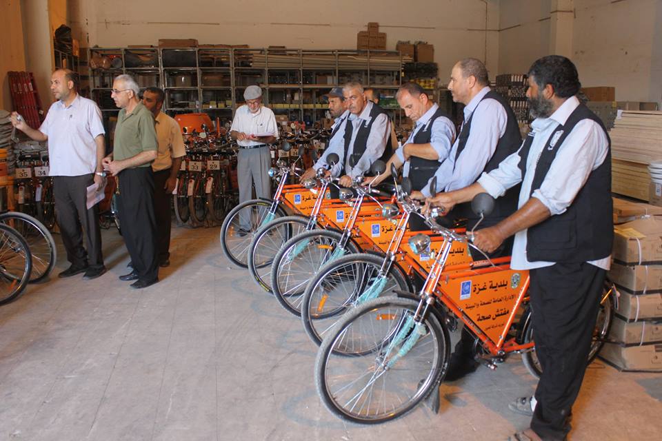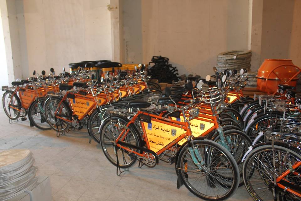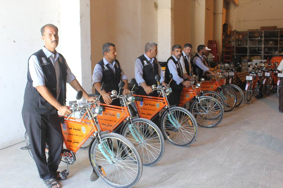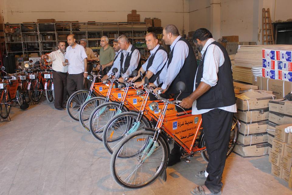 وفرت بلدية غزة (40) دراجة هوائية لاستعمالها من قبل مراقبي جمع النفايات في المدينة لعدم توفر السيارات الكافية للعمل.