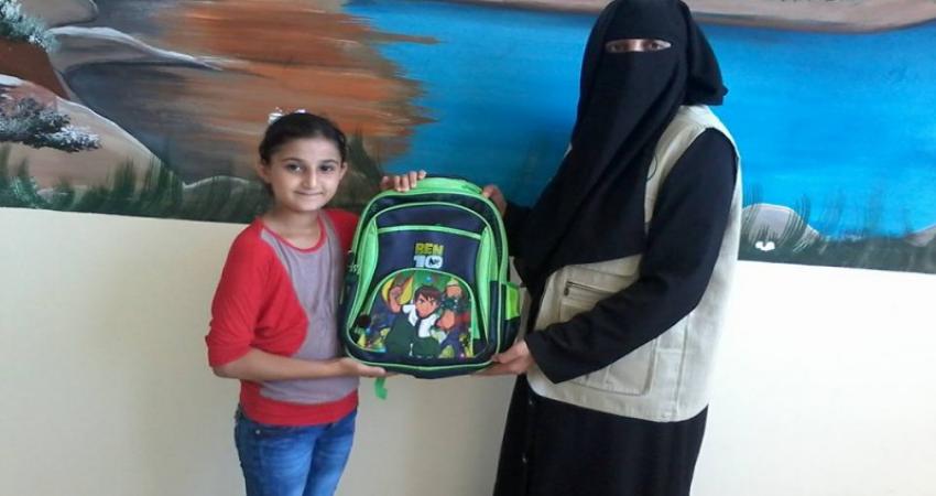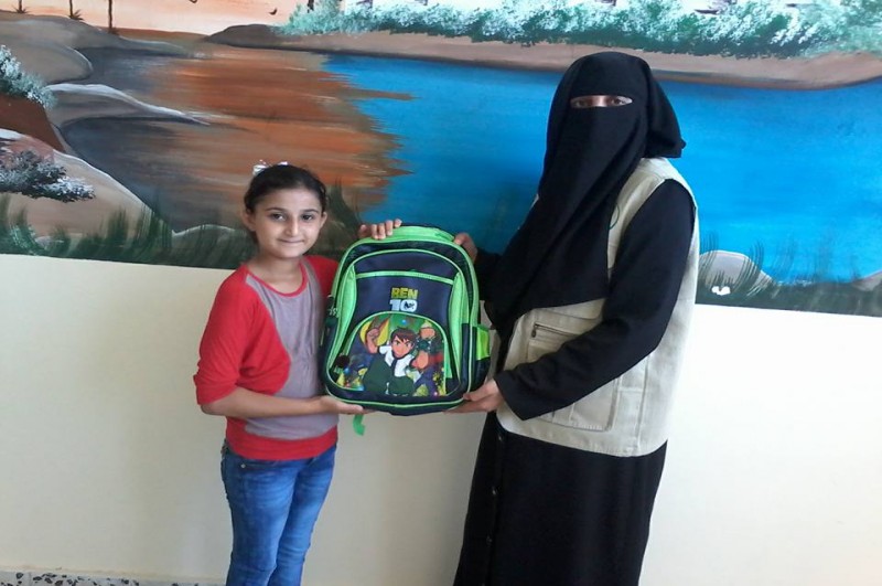 وزعت جمعية الشابات المسلمات في مخيم المغازي وسط القطاع ، صباح اليوم الأحد، حقائب مدرسية بحضور مديرة الجمعية عليا العايدي وأعضاء الجمعية.