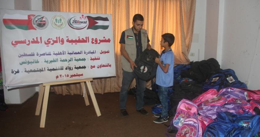وزّعت جمعية "روّاد" للتنمية المجتمعية عددًا من الحقائب المدرسية والقرطاسية على الطلبة الفقراء في منطقة غرب غزة، وذلك بدعم كريم من المبادرة العُمانية الأهلية لمناصرة فلسطين، حيث استفاد من هذا المشروع مئات الطلبة الفقراء.