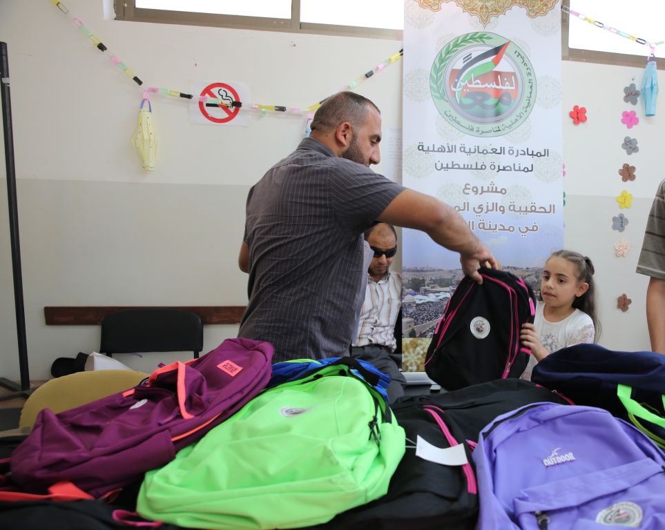 اختتمت المبادرة العُمانية الأهلية لمناصرة فلسطين "معًا لفلسطين" صباح اليوم توزيع الحقائب والقرطاسية المدرسية على الطلاب في كلاً من قطاع غزة ومدينة القدس المحتلة بقيمة زادت عن 40 ألف دولار أمريكي.