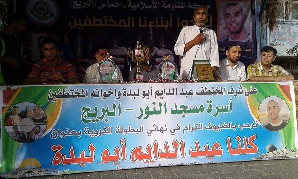 اختتمت أسرة مسجد النور في مخيم البريج وسط قطاع غزة دوري كرة القدم وفاء للمختطف عبدالدايم أبو لبدة وإخوانه المختطفين في الأراضي المصرية.