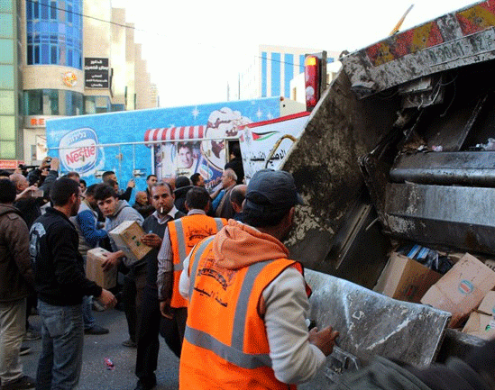 وذكر البيان أن عملية الضبط تمت بعد مداهمة الطواقم لمخزن التاجر الواقع في مدينة رام الله وتم العثور على 1200 لاصق، و4600 طاقية قماش تالفة، و1000 لتر دهان، و27 علبة حبر طابعة. مشير إلى أنه سيتم إحالة التاجر للنيابة العامة لمكافحة الجرائم الاقتصادية وإتلاف الكمية وفق الأصول القانونية المتبعة.