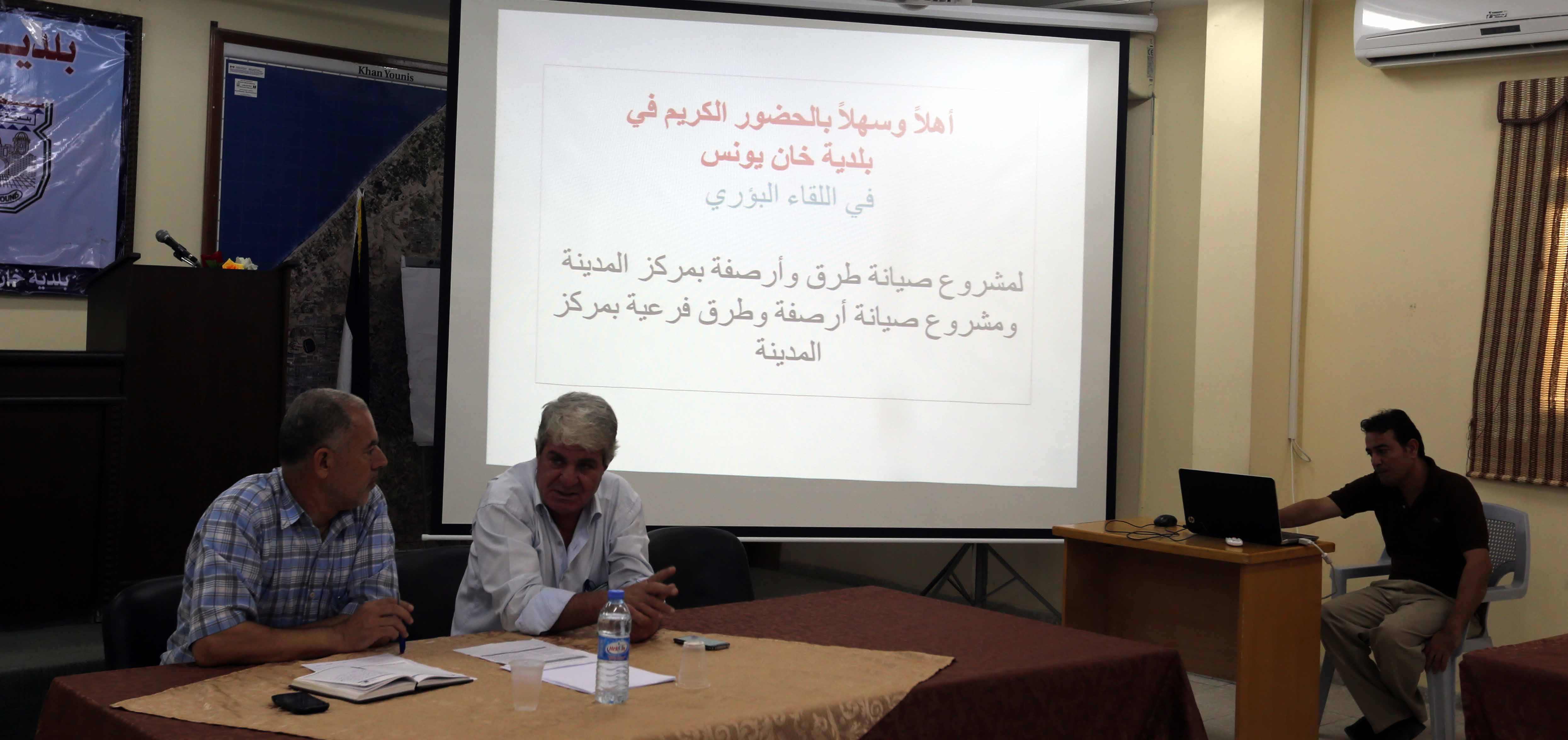 ومن جانبه أوضح العبادلة أهمية اللقاءات والمتمثلة في تنظيم جلسات منفصلة مع السكان المحليين القاطنين في مناطق متفرقة من خان يونس والذين سيستفيدون من مشاريع البنية التحتية والمتمثلة في (تطوير شارع الأرنب بحي المحطة، وتطوير أرصفة شارع (69) بحي معن، مشروع تطوير الكراج المركزي، وتطوير قلم الجمهور، وإعادة تأهيل سوق الجملة بخان يونس، وتطوير سوق حي الأمل، وصيانة طرق وأرصفة بمركز المدينة، وطرق فرعية بالمدينة، وإنشاء شبكة صرف صحي لشارع (14255) السطر، وتطوير جزء من شارع رقم (14) وإنشاء مركز تجاري رقم 2 مرحلة أولى).