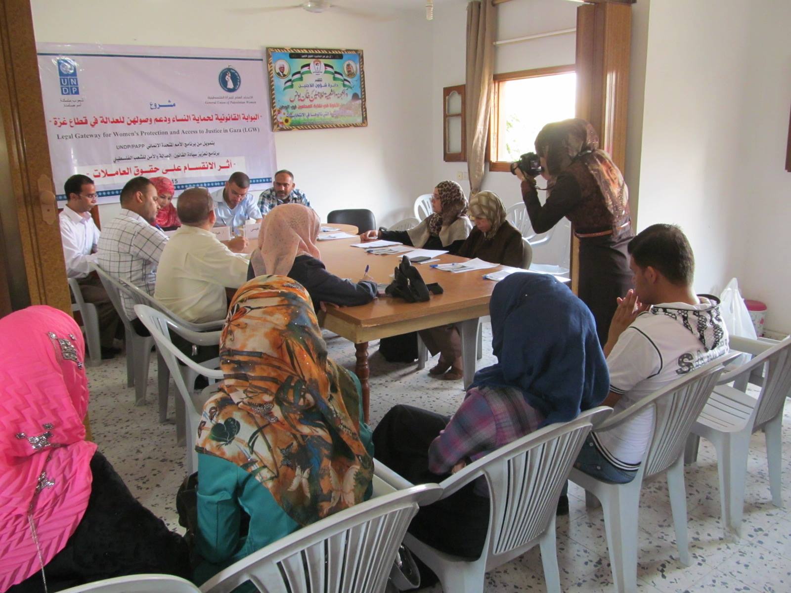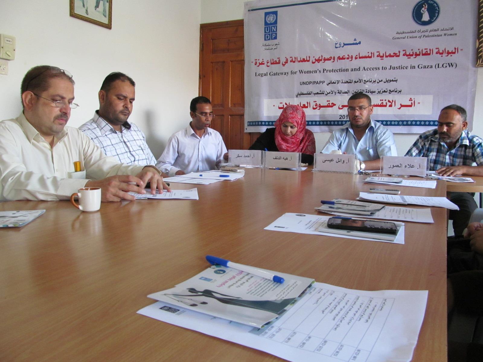 شاركت وزارة العمل - مديرية عمل محافظة خانيونس ممثلة بمديرها م. وائل عصام عيسى في جلسة عمل بعنوان "أثر الانقسام على حقوق العاملات في قطاع الصحة"، والتي نظمها الاتحاد العام للمرأة الفلسطينية بتمويل من برنامج الأمم المتحدة الإنمائي بمشاركة كلاً من الاتحاد العام لنقابة العمال في محافظة خانيونس.