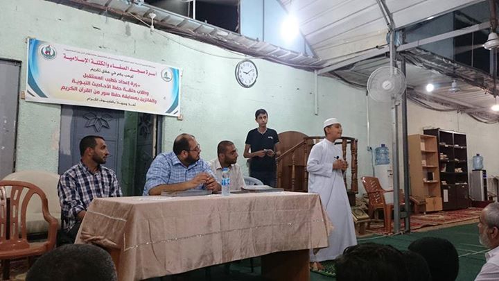 كرمت الكتلة الإسلامية الجناح الطلابي لحركة "حماس"، في مسجد الصفاء في مخيم البريج وسط القطاع بالتعاون مع أسرة المسجد الطلاب المشاركين في دورة إعداد خطيب المستقبل وطلاب حلقة حفظ الأحاديث النبوية والطلاب الفائزين في مسابقة حفظ سور من القرآن الكريم.
