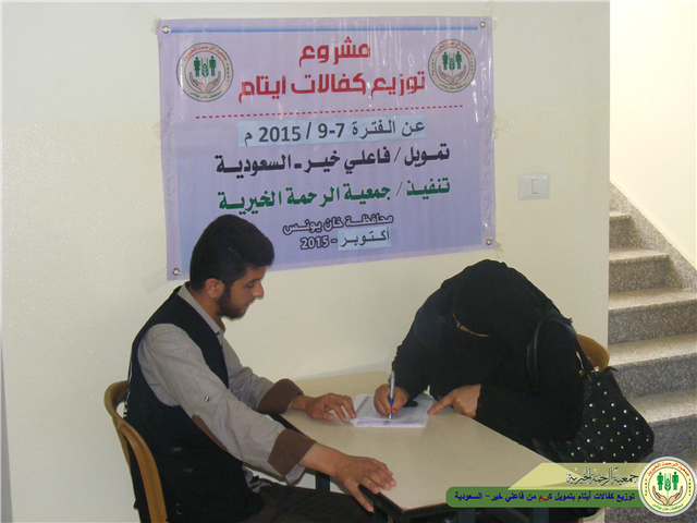 وزعت جمعية الرحمة الخيرية كفالات الأيتام على مستحقيها في محافظة خان يونس بتمويل كريم من فاعلي خير بالمملكة العربية السعودية, وذلك عن الأشهر (7-8-9) من العام الجاري.