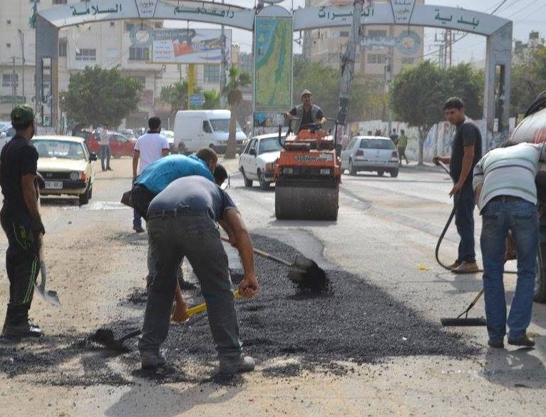 بدأت بلدية النصيرات وسط قطاع غزة بتنفيذ مشروع ترميم وصيانة الطرق الرئيسية في المخيم، بتمويل من صندوق تطوير وإقراض البلديات بقيمة 68.250 ألف يورو.