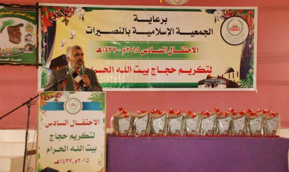 أقامت الجمعية الإسلامية بمخيم النصيرات وسط قطاع غزة الحفل السادس لتكريم حجاج بيت الله الحرام، بحضور 132 حاج وحاجة، إلى جانب ممثلين عن وزارة الأوقاف، ومجلس إدارة الجمعية، وعدد من الشخصيات ومخاتير ووجهاء المخيم.