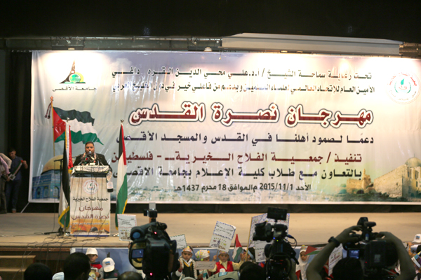 نظمت جمعية الفلاح الخيرية في فلسطين، اليوم الأحد، بالتعاون مع كلية الإعلام بجامعة الأقصى مهرجانا لنصرة القدس في مركز رشاد الثقافي بغزة.