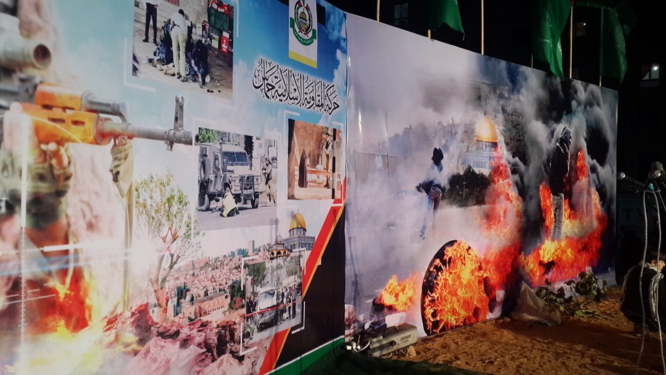 نظمت حركة المقاومة الإسلامية "حماس"، مساء الخميس مهرجاناً جماهيرياً حاشداً في ساحة الشيخ زايد بمحافظة شمال غزة تحت عنوان "من غزة الأحرار إلى انتفاضة الثوار"، دعماً وإسناداً لانتفاضة القدس.