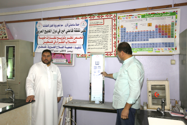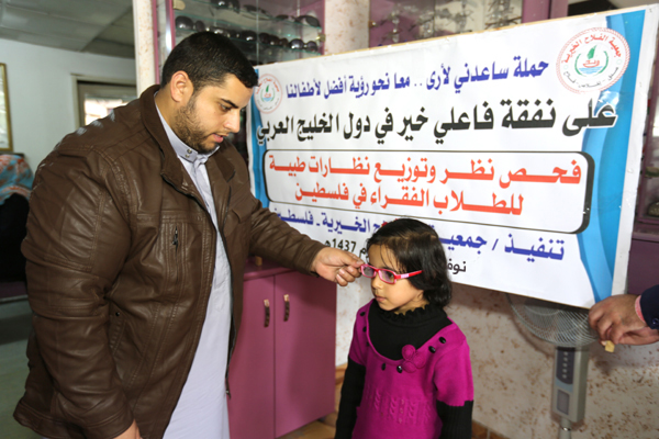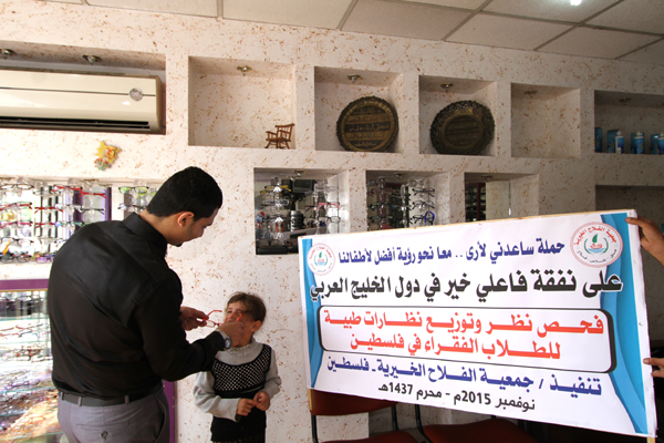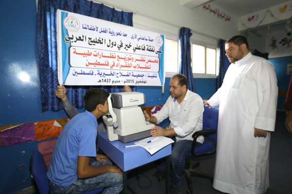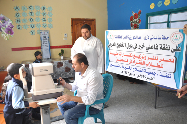 تواصل جمعية الفلاح الخيرية في فلسطين وبالتعاون مع وزارة التربية والتعليم مشروع فحص نظر وتوفير النظارات الطبية على طلبة المدارس في فلسطين ضمن حملة ساعدني لأرى معا نحو رؤية أفضل لأطفال فلسطين وذلك بدعم من أهل الخير في دول الخليج العربي وبرعاية العلامة أ.د. علي محي الدين القره داغي الأمين العام للاتحاد العالمي لعلماء المسلمين.