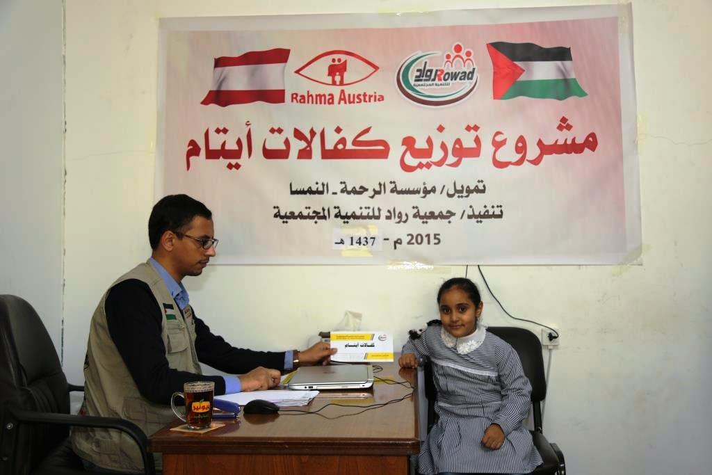 شرعت جمعية روّاد للتنمية المجتمعية يوم أمس بتنفيذ مشروع توزيع كفالات للأيتام في قطاع غزة والمُمول من مؤسسة الرحمة -النمسا, حيث بلغ عدد المستفيدين من المشروع 35 يتيم موزعين على كافة محافظات قطاع غزة، حيث بلغ تكلفة المشروع 3500 ألف دولار أمريكي.