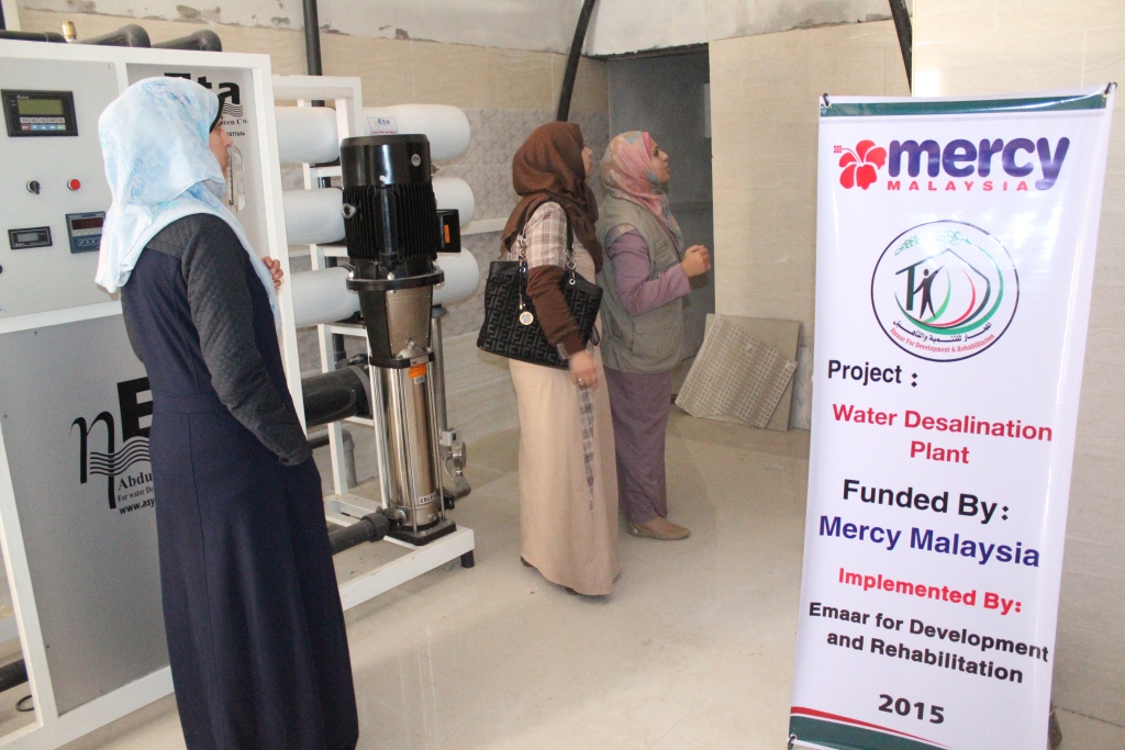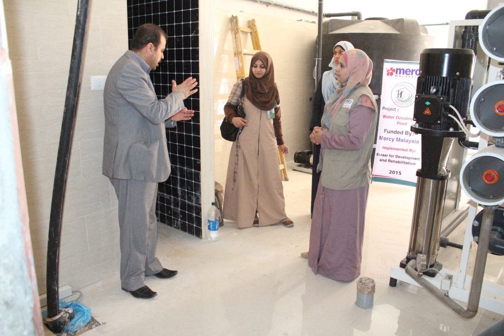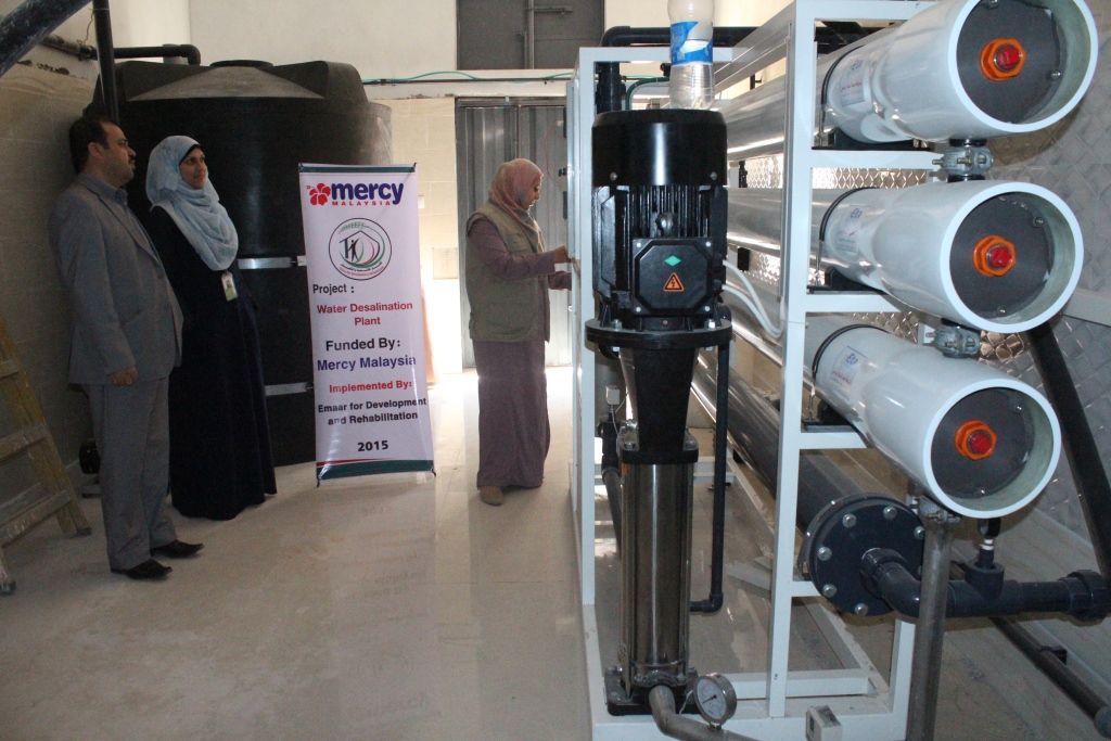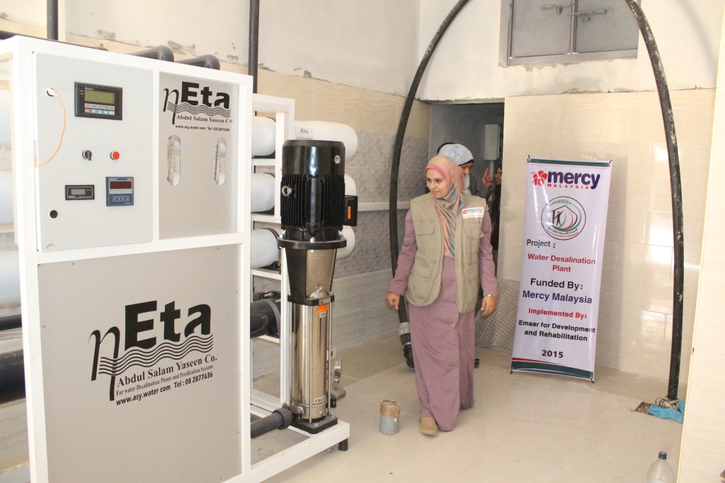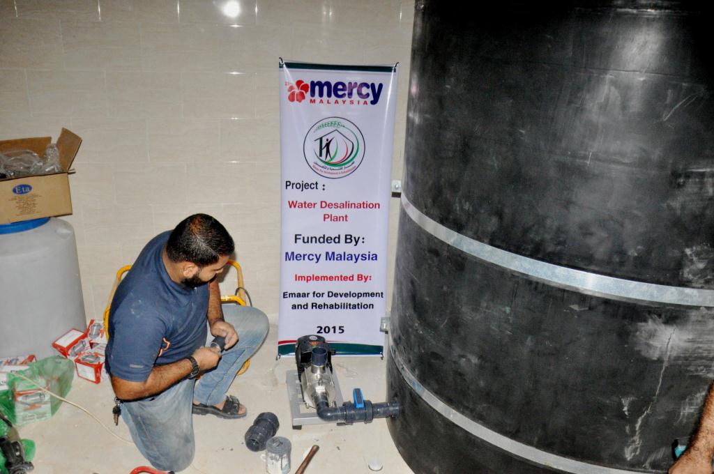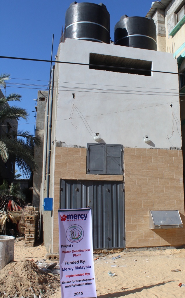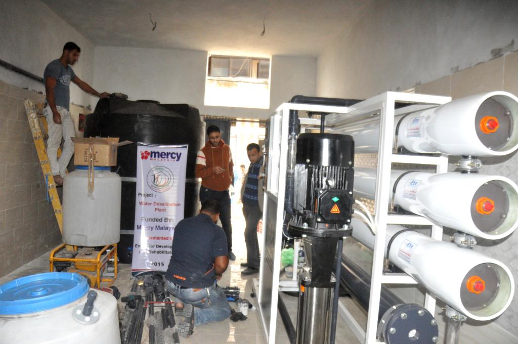 نفذت جمعية إعمار للتنمية والتأهيل بخان يونس جنوب قطاع غزة  مشروع محطة لتحلية مياه الشرب بقيمة  100  ألف دولار بدعم مؤسسة ميرسي ماليزيا.