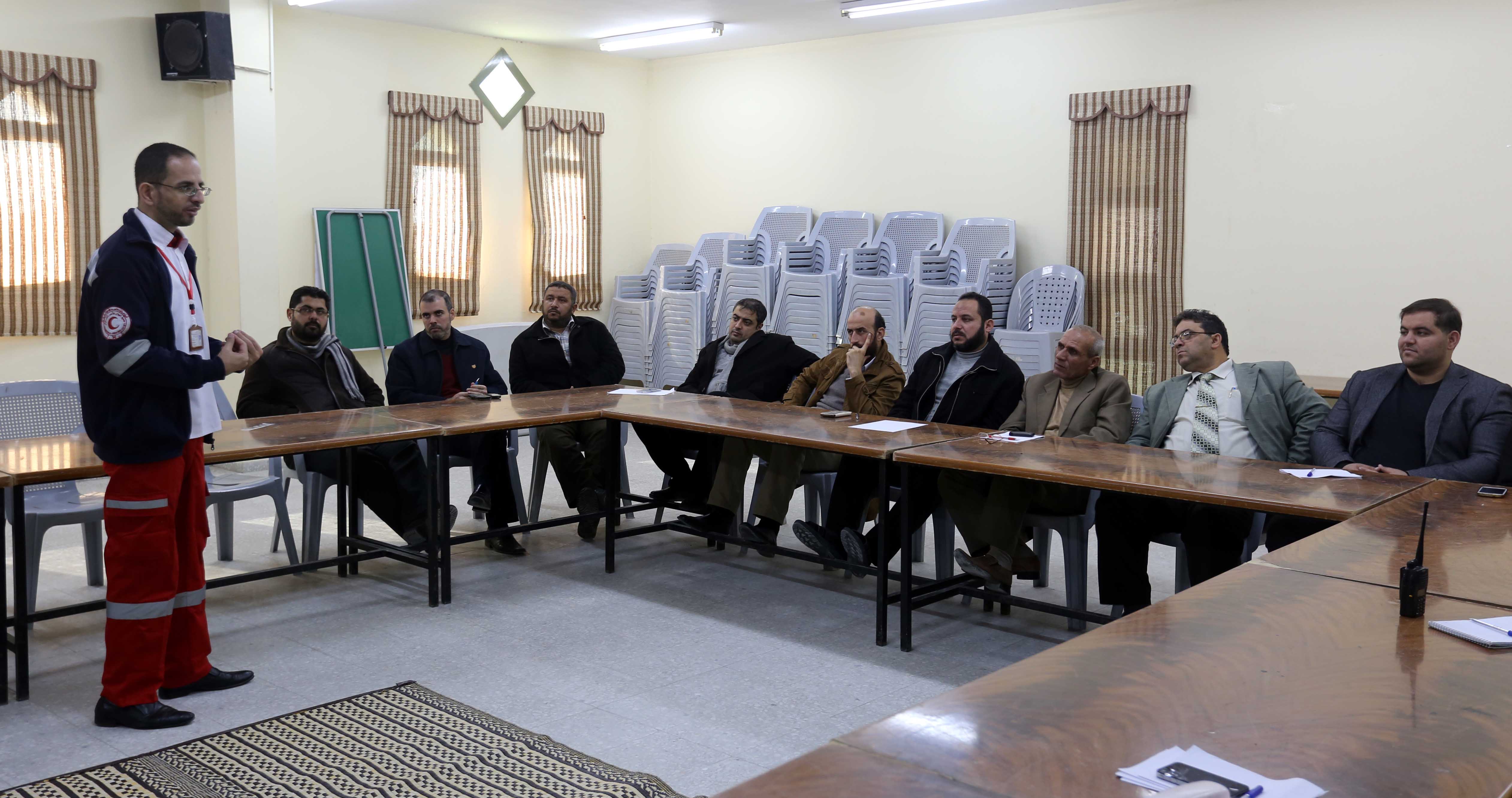 وفي بداية اللقاء رحب مدير دائرة العلاقات العامة بالبلدية الأستاذ عماد الأغا بكافة الحضور شاكراً جمعية الهلال الأحمر على استجابتهم لتنفيذ الدورة لا سيما وأنها تعتبر من المؤسسات الإنسانية السامية التي تخدم المجتمع الفلسطيني ومشهود لهما بالعطاء والانتماء عبر تقديم الخدمات الصحية والإغاثية والإنسانية في مختلف الميادين وخاصة في أوقات الحروب والكوارث، ودوماً يتقدمون الصفوف لإغاثة المصابين حيث سقط منهم الشهداء والجرحى في الوقت الذي يعمل الكثير منهم على بند التطوع.
