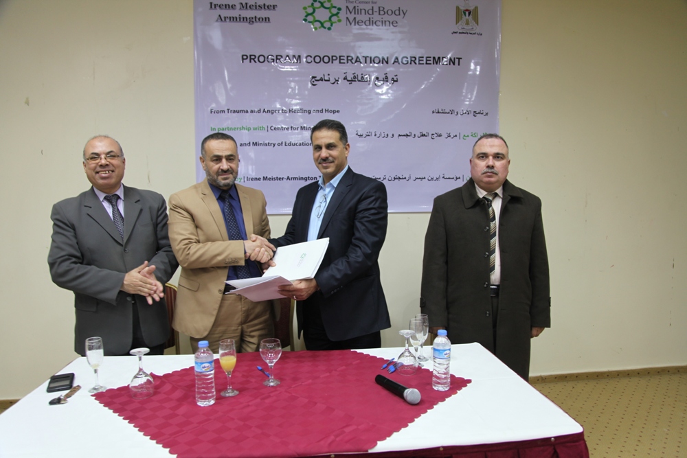 وقعت وزارة التربية والتعليم العالي مع مركز علاج العقل والجسم بغزة اتفاقية تعاون لتنفيذ برنامج الأمل والاستشفاء" ل400 طالب من مدرسة حطين الثانوية بمديرية تعليم شرق غزة ، بتمويل من من مؤسسة "ايرين ميسر ارمنجتون ترست" الدولية ويستمر لمدة عامين.