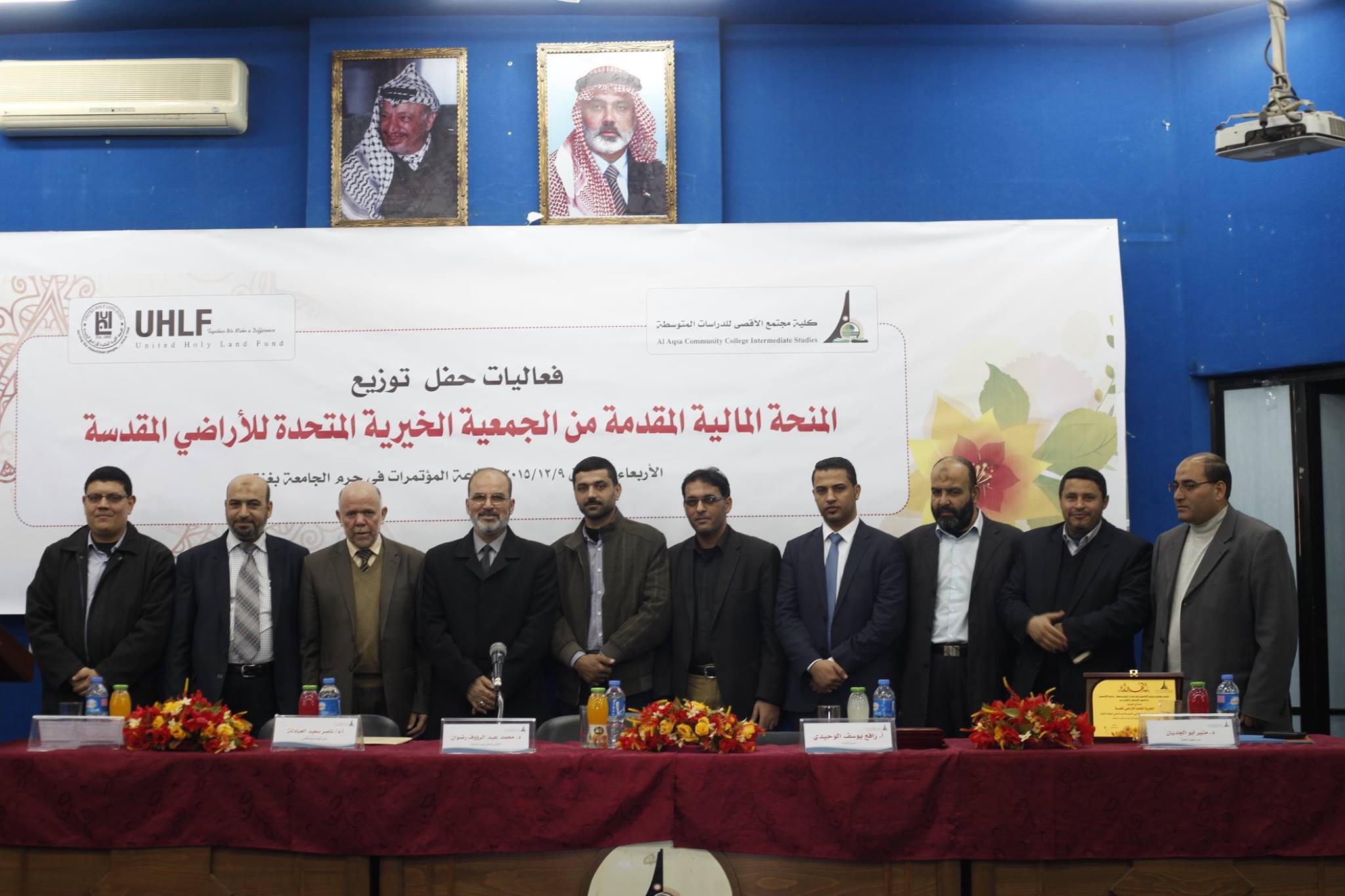نظمت جامعة الأقصى - كلية مجتمع الأقصى للدراسات المتوسطة, حفل توزيع المنحة المقدمة من الجمعية الخيرية المتحدة للأراضي المقدسة، بحضور القائم بأعمال رئيس الجامعة محمد رضوان، عميد كلية مجتمع الأقصى للدراسات المتوسطة ناصر العبادلة، وعميد شؤون الطلبة منير أبو الجديان، ومساعد عميد كلية مجتمع الأقصى للدراسات المتوسطة ماجد الـدلو، ممثل الجمعية الخيرية المتحدة للأراضي المقدسة سـامر السـمنة ورافع الوحيدي منسق المنحة محمد حمودة.