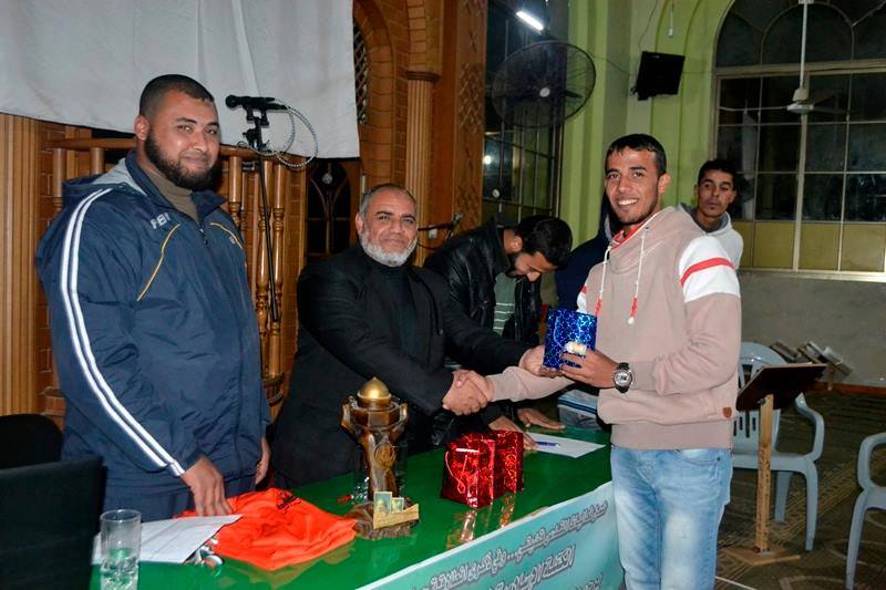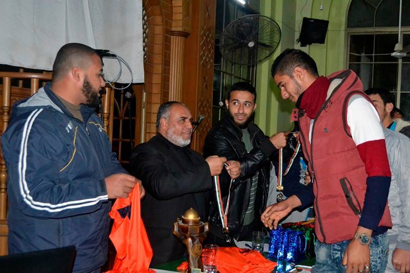 وفي ختام الحفل تم تكريم منطقة مخيم "1" الفريق الفائز بالمرحلة الأولى، وفريق منطقة الزهراء الفائز بالمرحلة الثانية، وفريق منطقة مخيم "5" الفائز بالمرحلة الثالثة، كما تم تكريم الفرق الفائزة في بطولة لبيك يا قدس الرياضية، حيث فاز فريق مسجد الجمعية بالمركز الأول، وفريق الشهيد أحمد ياسين بالمركز الثاني.
