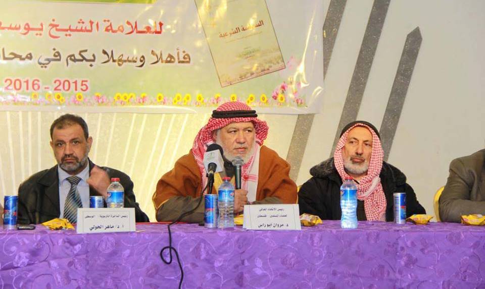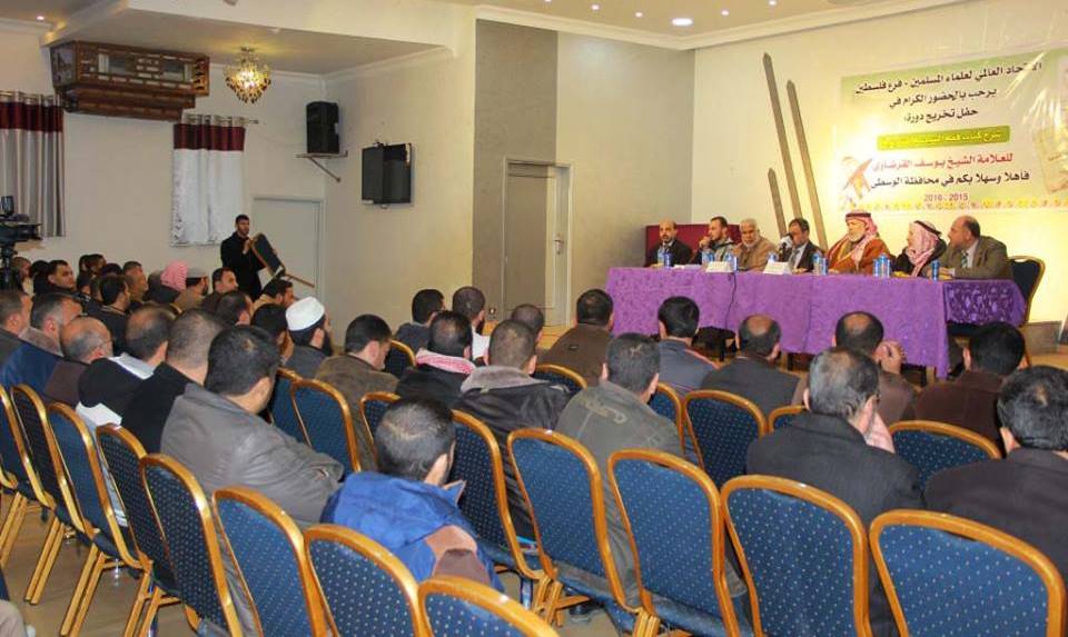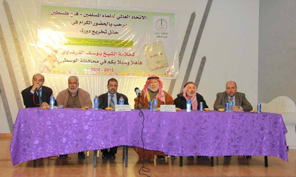 نظم الاتحاد العالمي لعلماء المسلمين فرع فلسطين في المحافظة الوسطى حفل تكريم للمشاركين في دورة "شرح كتاب فقه السياسة الشرعية" للدكتور يوسف القرضاوي.
