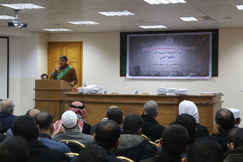 اختتمت دائرة السنة بدار القرآن الكريم والسنة مسابقة بلغوا عني لحفظ الأحاديث النبوية في احتفال أقيم بقاعة المؤتمرات بالمقر الرئيس بغزة.