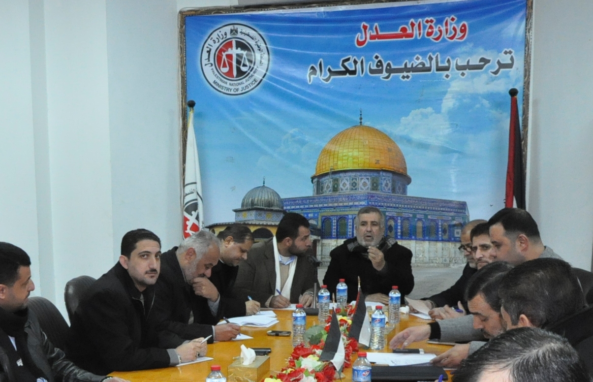 وذلك برئاسة وكيل وزارة العدل المستشار عمر البرش ومشاركة  كل من أحمد الكحلوت مدير عام وحدة حقوق الإنسان ورئيس لجنة التفتيش على السجون بالوزارة و يعقوب الغندور مدير عام ديوان الفتوى والتشريع والعقيد حقوقي وئام مطر مدير الشؤون القانونية بالشرطة والمقدم سامح حمدان ممثلا عن مديرية الإصلاح والتأهيل وعبد العزير حمدونة ممثلا عن الشؤون القانونية لمكتب وزير الداخلية والعبد الكحلوت مدير وحدة الشؤون القانونية بالسجون وعدد من المستشارين القانونيين والمدراء من وزارتي العدل والداخلية .