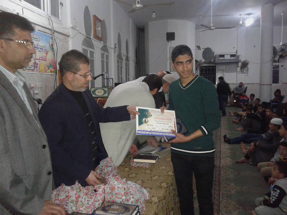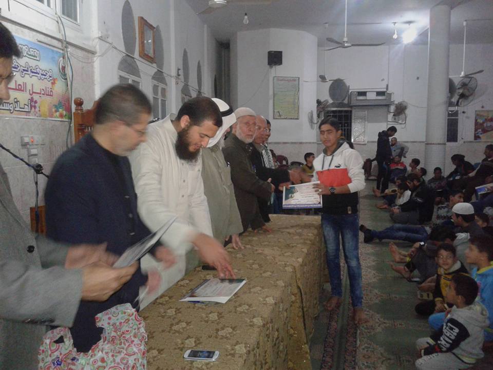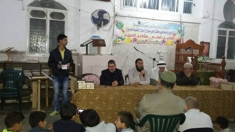 نظمت الكتلة الإسلامية في مسجد الشهيد في مخيم البريج وسط القطاع حفل تكريم أوائل الطلبة من المرحلتين الإعدادية تحت عنوان "قناديل العلم , مشاعل التحرير".