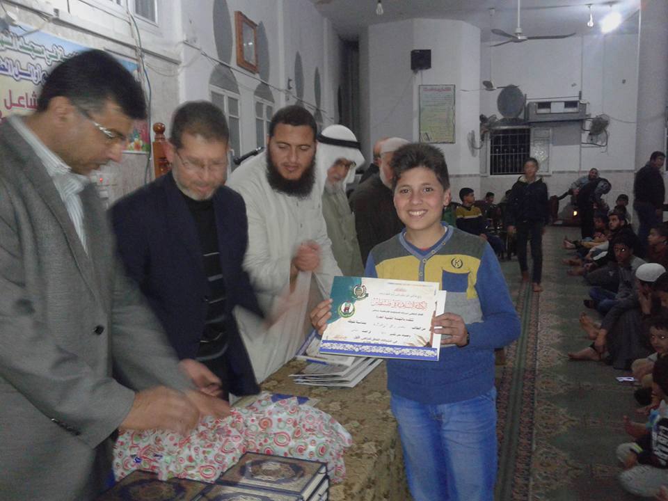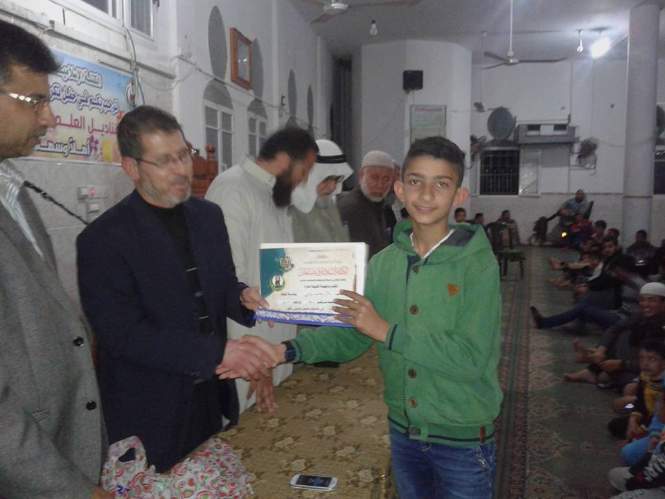 وحضر الاحتفال أسرة المسجد وعدد من قيادة حركة حماس الكتلة الإسلامية وأهالي الحي وأولياء أمور الطلاب المتفوقين.