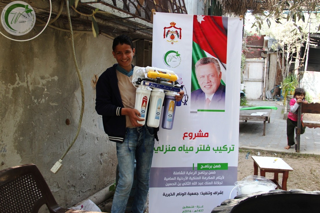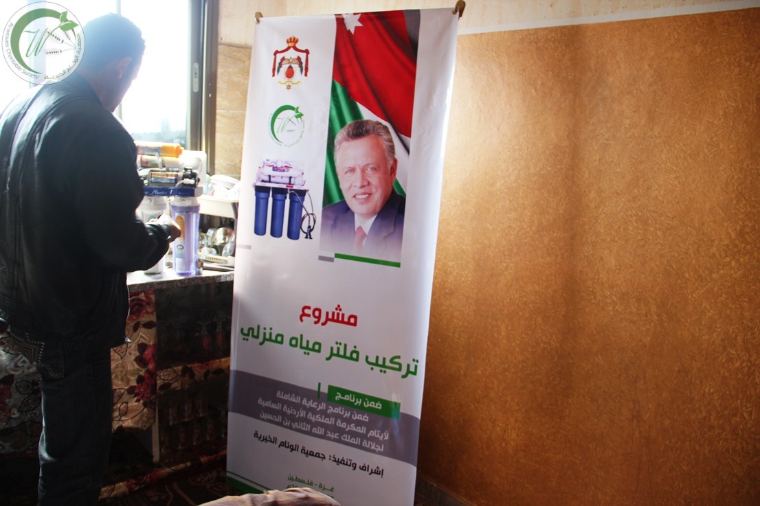 وقال محمد أبو مرعي رئيس الجمعية "تمتد المرحلة الثانية من المشروع الذي تنفذه الجمعية اليوم ضمن برامج الرعاية الشاملة لأيتام المكرمة الملكية السامية مدة أسبوع، تشمل توزيع فلاتر مياه بجودة عالية على 32 أسرة مكفولة".