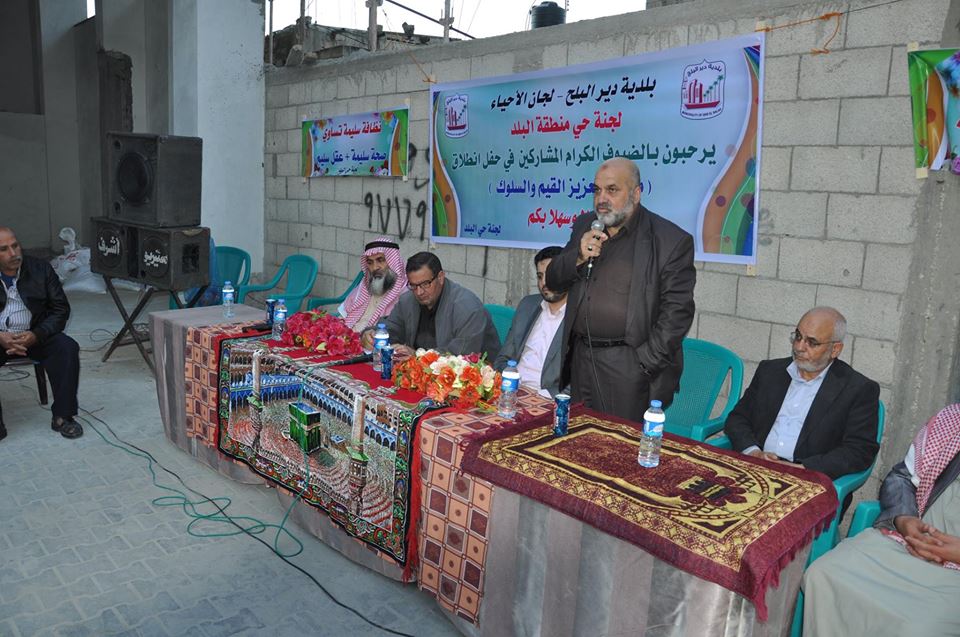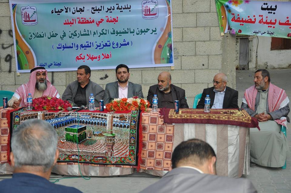 نظمت بلدية دير البلح لقاء مجتمعياً ضمن فعاليات البرنامج الوطني لتعزيز السلوك القيمي بالمجتمع، بحضور وزارة الثقافة والحكم المحلي ووزارة الاوقاف ولجان الاحياء والوجهاء والمخاتير وأهالي الحي وسط البلد.