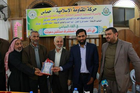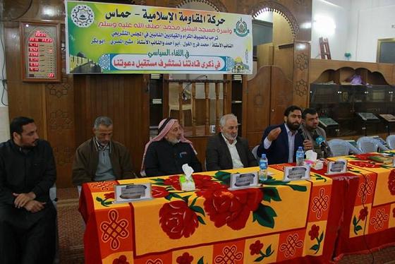 نظمت حركة حماس في دير البلح، لقاءً سياسياً بعنوان بمسجد البشير تحت عنوان "في ذكرى قادتنا نتشرف مستقبل دعوتنا".