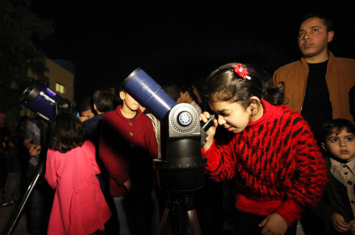 تمكن عشرات الأطفال من قطاع غزة من مشاهدة أضخم الكواكب في المجموعة الشمسية "المشتري" من خلال استخدام جهاز رؤية جديد وفره مركز القطان في مدينة غزة.