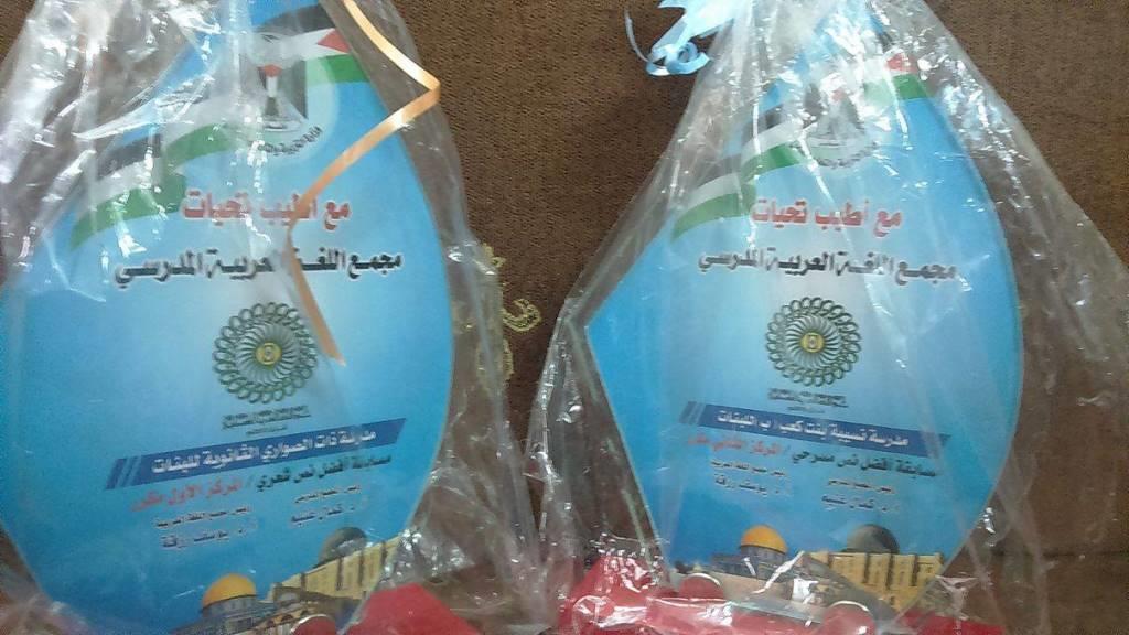 ففي مسابقة أفضل نص شعري، حصلت الطالبة إسراء بحر من مدرسة ذات الصواري الثانوية للبنات على المركز الاول على مستوي الوزارة.