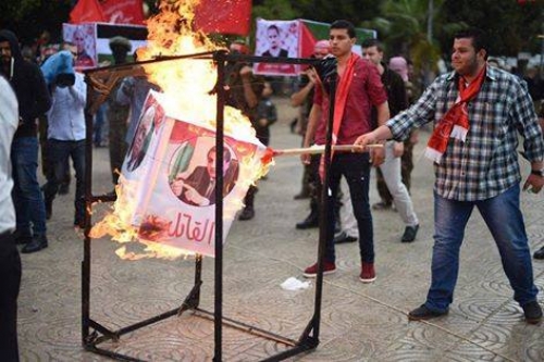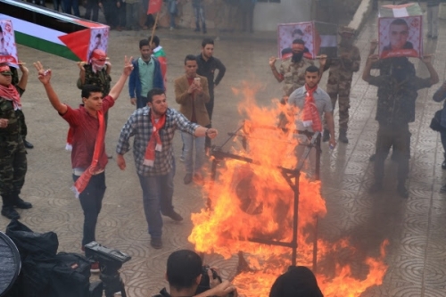 أحرق متظاهرون اليوم الثلاثاء صورًا لرئيس السلطة محمود عباس، خلال تظاهرة نظمتها الجبهة الشعبية لتحرير فلسطين في مدينة غزة.
