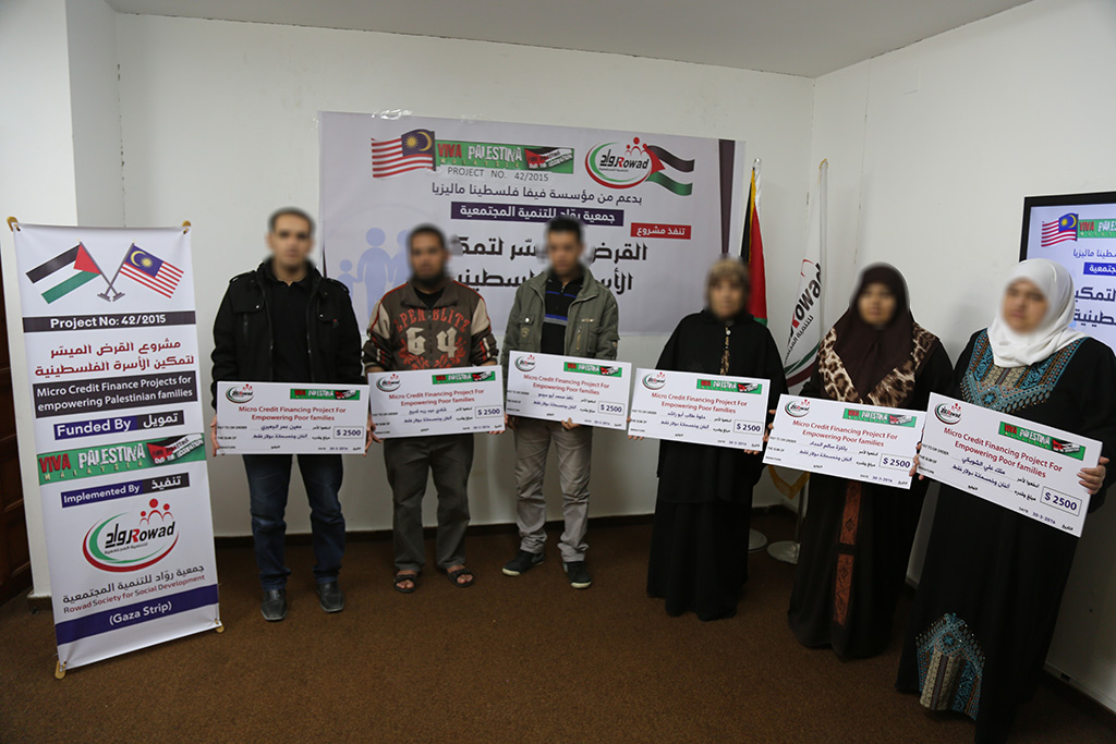 ضمن مشروع القرض الحسن لتمكين الأسر الفلسطينية والمُمَول من مؤسسة فيفا فلسطينا -ماليزيا، وزعت جمعية روّاد للتنمية المجتمعية شيكات الدفعة الأولى من العام الجاري لأرباب الأسر الفقيرة والمهمشة من ذوي المشاريع التنموية الصغيرة، جاء ذلك خلال لقاء تسليم شيكات القروض في مقر جمعية روّاد بمدينة غزة، والذي حضره كلاً من أ. رباح بخيت رئيس الجمعية و م. هاني ثريا مدير مكتب مؤسسة فيفا فلسطينا ماليزيا و م. محمد أبو سيدو مدير الجمعية.