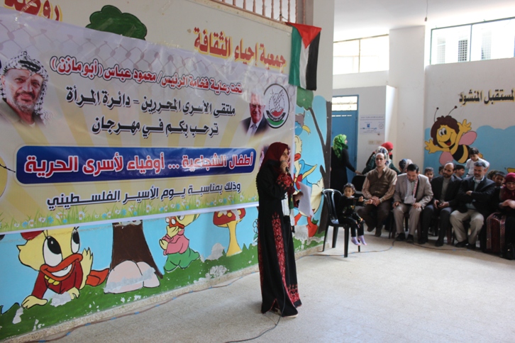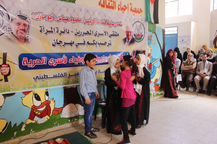 نظم ملتقى الأسرى المحررين "دائرة المرأة" وجمعية إحياء الثقافة مهرجانا بمناسبة يوم الأسير الفلسطيني تحت عنوان "أطفال الشجاعية.. أوفياء لأسرى الحرية" وذلك في مقر الجمعية بحي الشجاعية شرق غزة بحضور قيادة الملتقى ومجلس إدارة الجمعية وأطفال روضة الطفل السعيد التابعة للجمعية.