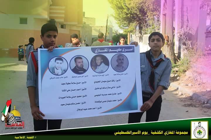 نظمت مجموعة المغازي الكشفية مسيراً كشفياً جاب شوارع مخيم المغازي وسط قطاع غزة، بمناسبة ذكرى يوم الأسير الفلسطيني.