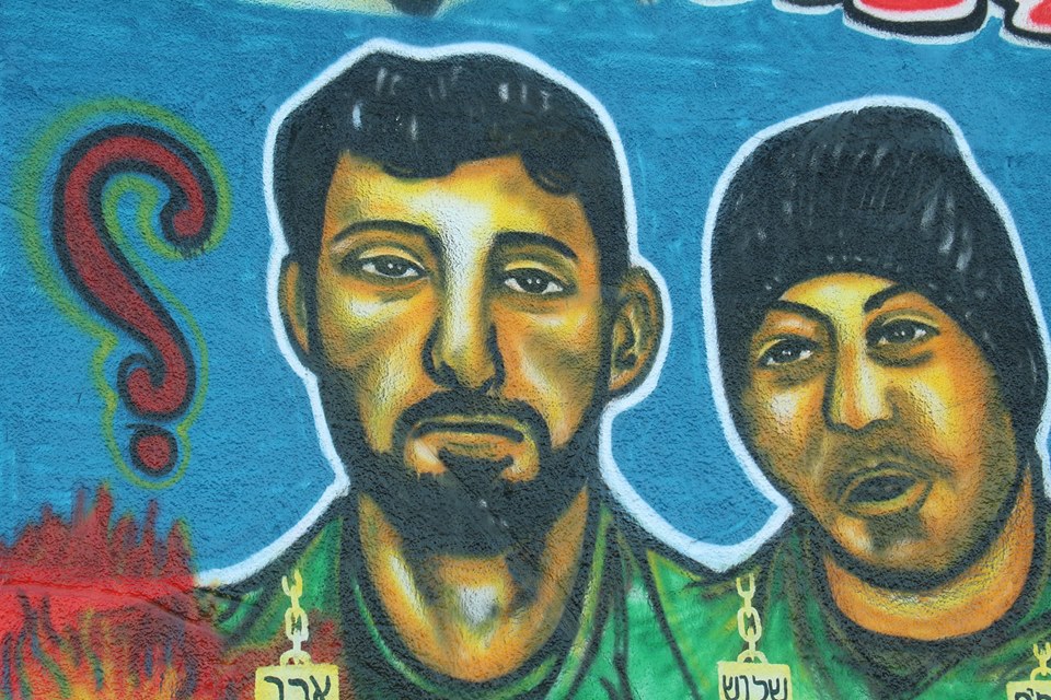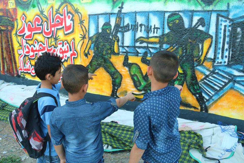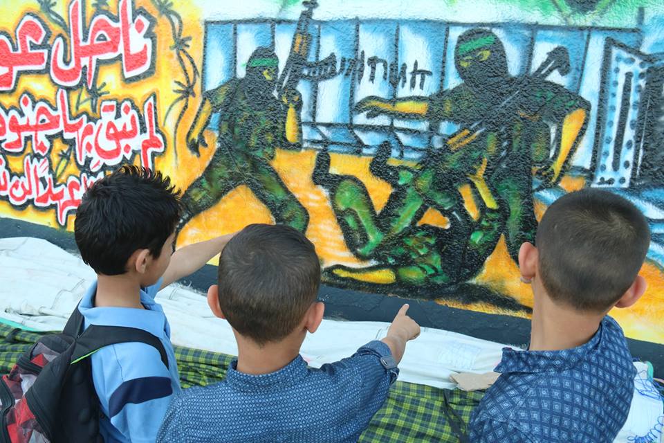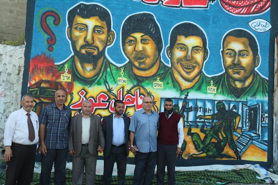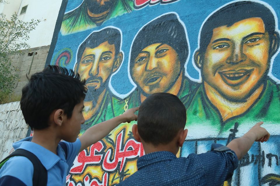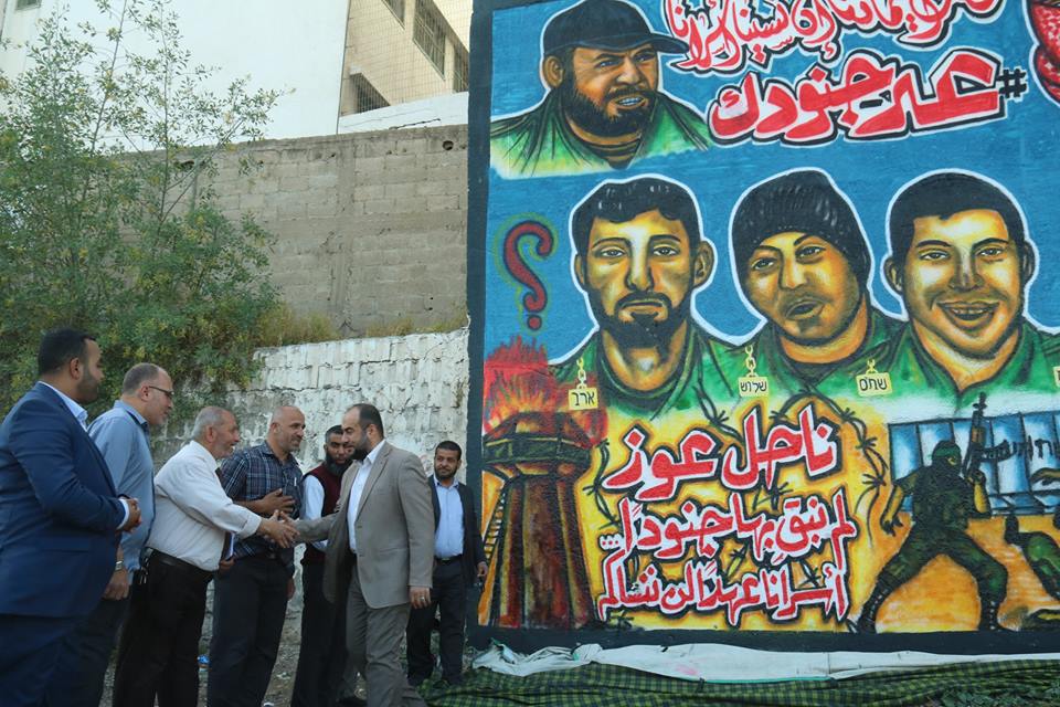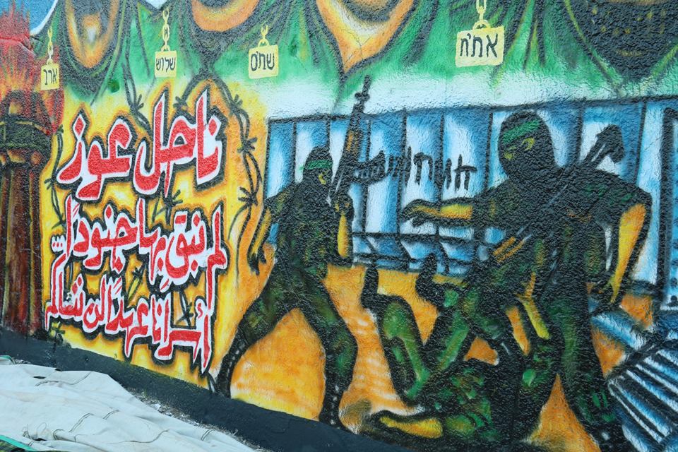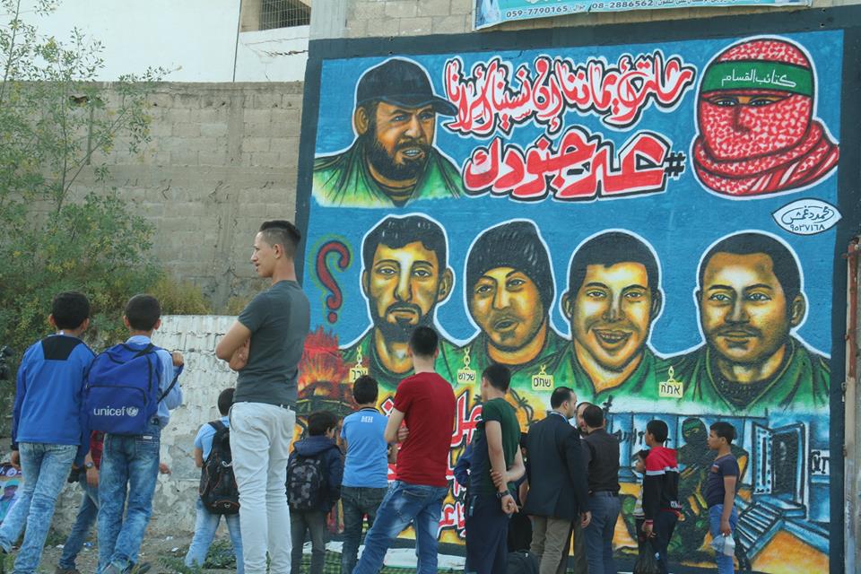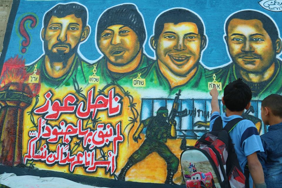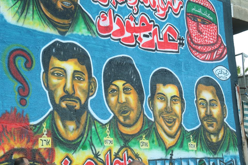 واستعرضت الجدارية رسومات لجنود الاحتلال الأربعة الأسرى لدى كتائب القسام، وكتب عليها شعارات "شلت أيماننا إن نسينا أسرانا"، و"ناحل عوز لم نبق بها جنودا"، و"أسرانا لن ننساكم".
