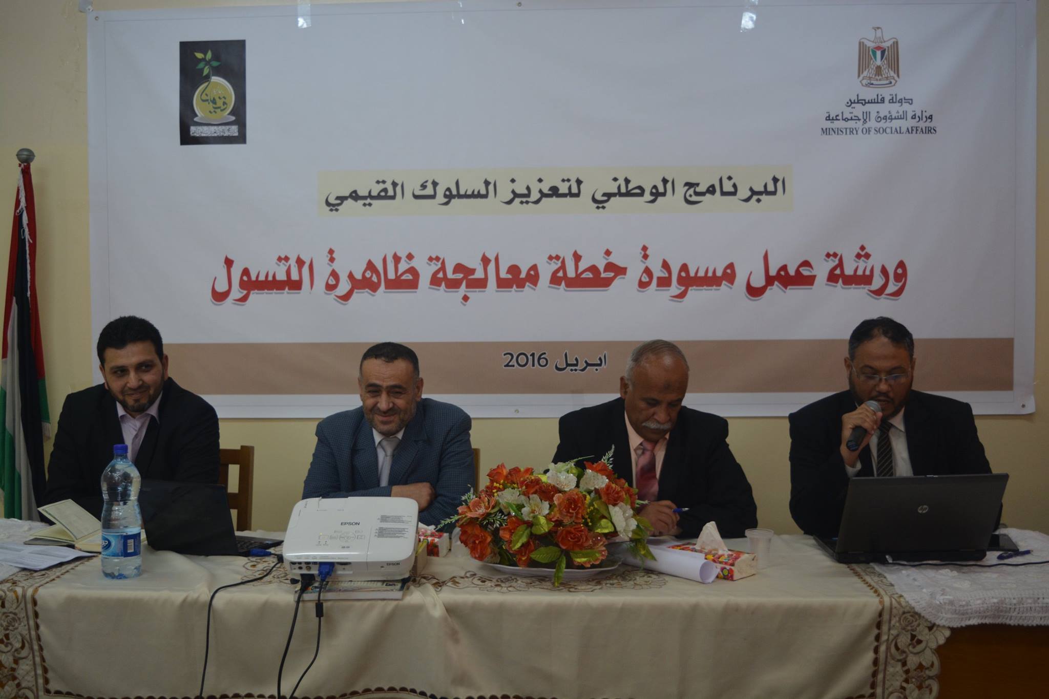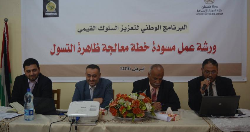 عقدت وزارة الثقافة وبالتعاون وزارة الشؤون الاجتماعية لصياغة مسودة خطة لمعالجة ظاهرة التسول، وذلك ضمن فعاليات البرنامج الوطني لتعزيز السلوك القيمي في المجتمع الفلسطيني "قيمنا بها نحيا"، حضرها سمير مطير وكيل مساعد وزارة الثقافة، ويوسف إبراهيم وكيل وزارة الشؤون الاجتماعية، وأنور البرعاوي وكيل مساعد وزارة التربية والتعليم العالي، وممثلين عن الوزارات المؤسسات الحكومية ومؤسسات المجتمع المدني والشخصيات البارزة.