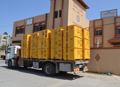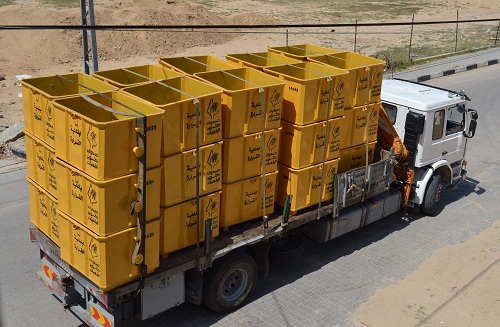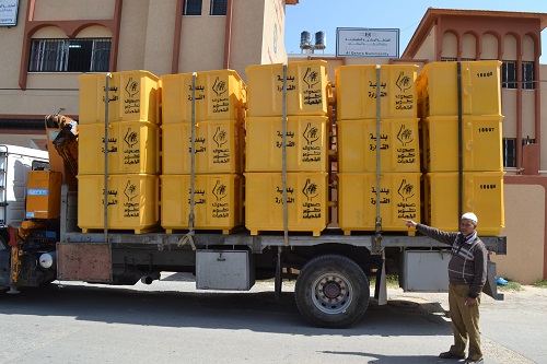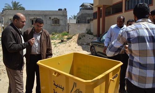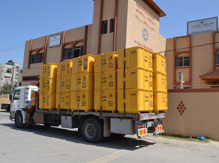 ويأتي هذا المشروع في إطار دعم قطاع النفايات الصلبة وكذلك مساعدة البلدية في تعويض جزء من الحاويات التي دمرها الاحتلال (الاسرائيلي) خلال عدوانه الأخير على قطاع غزة 2014م.
