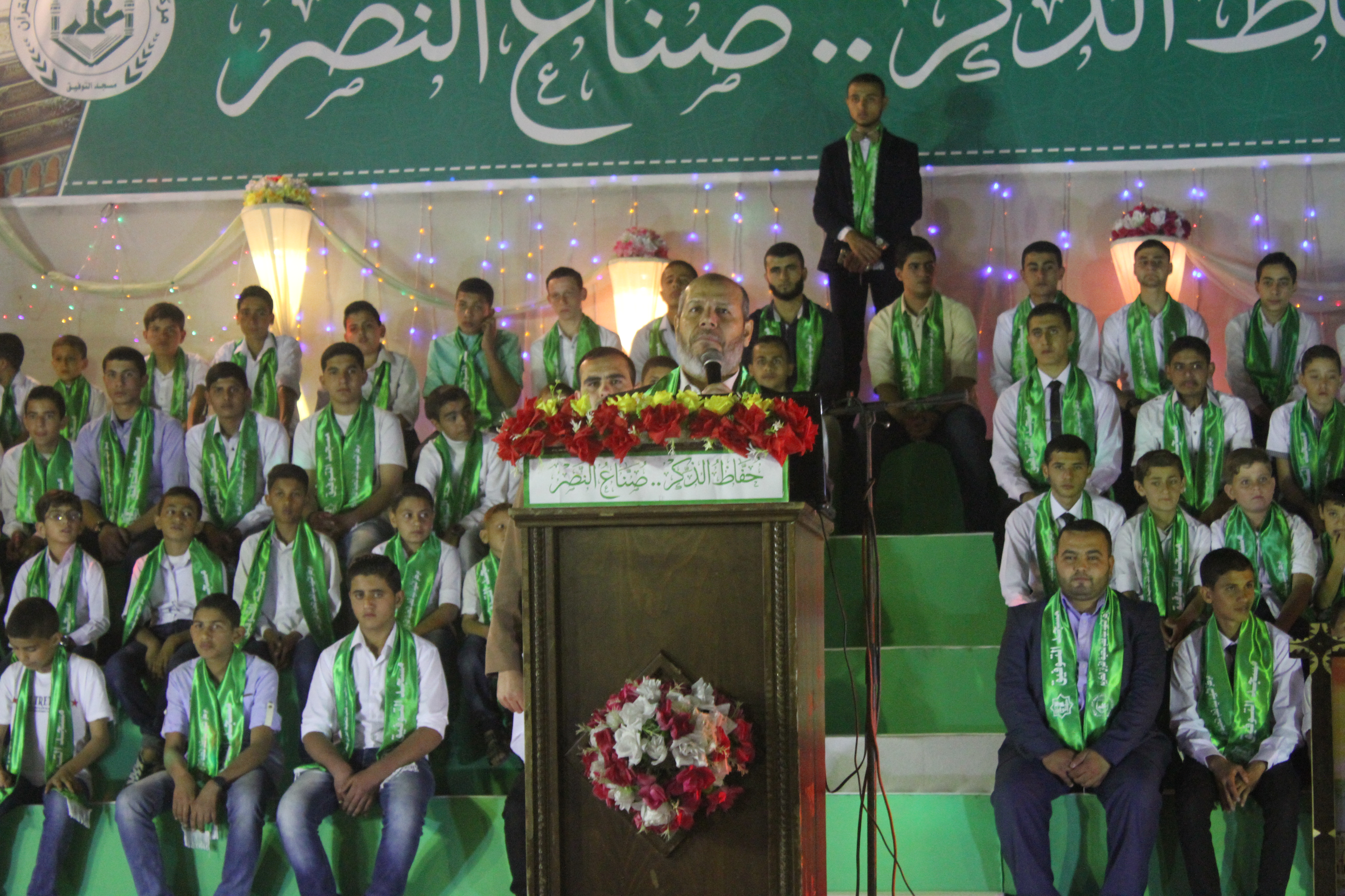 كلمة الحية جاءت خلال مهرجان قرآني الأحد أقيم على أنقاض مسجد التوفيق المدمر شرق الشجاعية بعنوان "حفاظ الذكر.. صناع النصر" لتخريج كوكبة من حفظة كتاب الله بحضور عدد من شخصيات حركة حماس في الشجاعية .