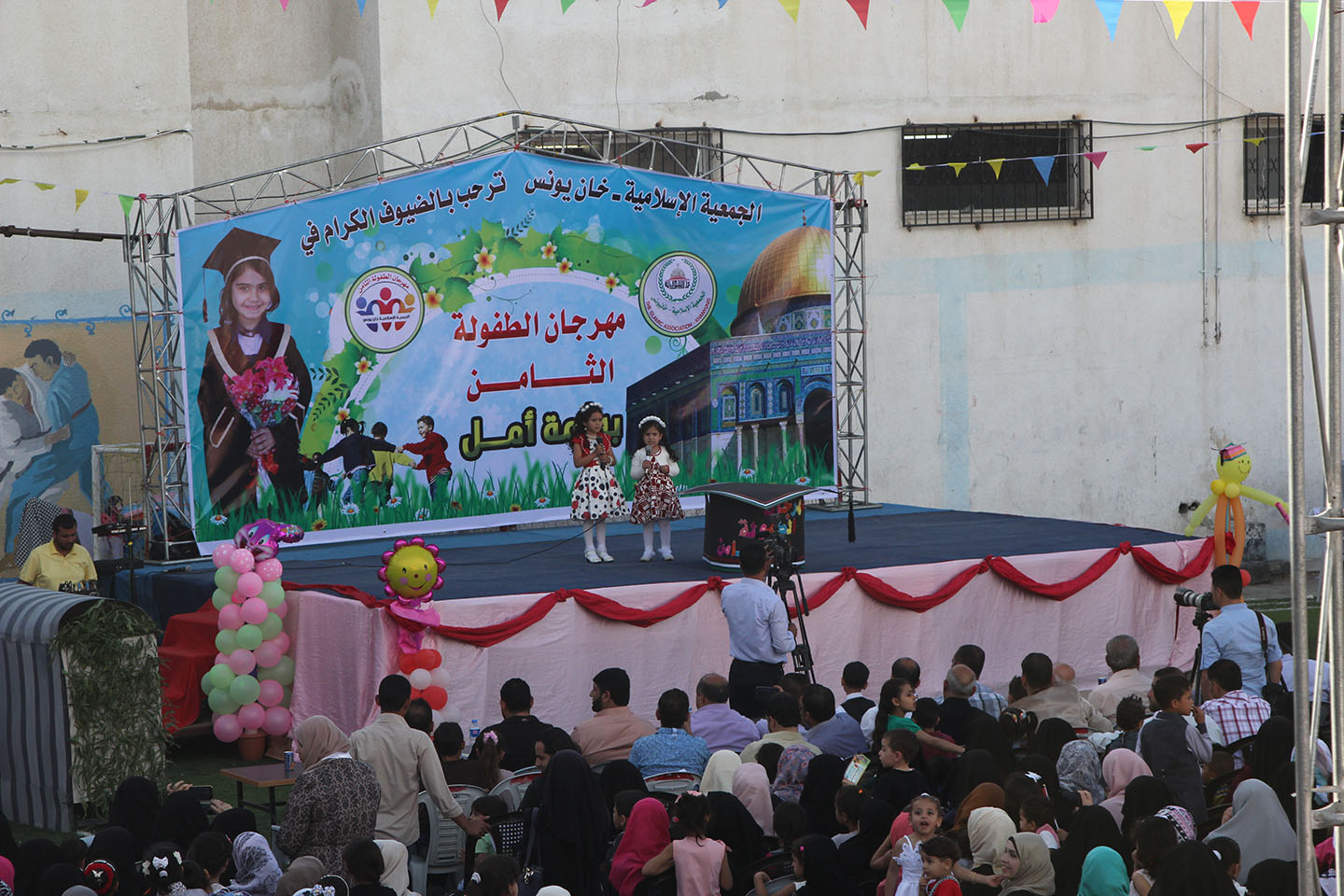 نظمت الجمعية الإسلامية بخان يونس مهرجان الطفولة الثامن " بسمة أمل "، وذلك عصر الخميس 5/5/2016م بحضور العديد من الشخصيات الاعتبارية والوجهاء وممثلي المؤسسات الخيرية والتعليمية والتربوية الراعية للطفولة وحشد كبير من الأهالي والمواطنين.