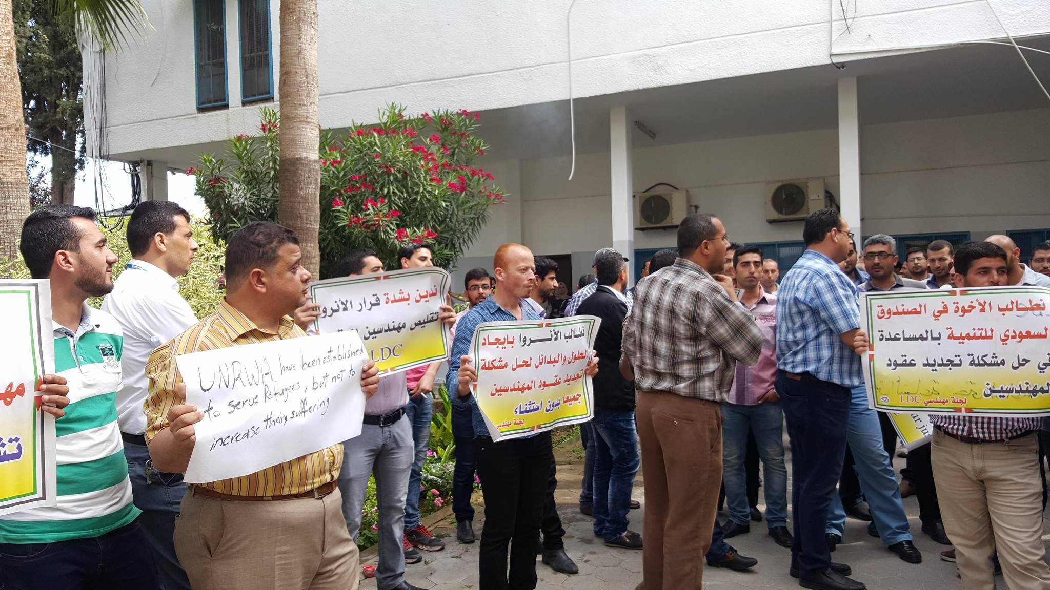 وأكد المهندسون، أن اعتصامهم داخل "الأونروا"، وخاصة أمام مكتب السيد "ديفيد ديبولد" مستمر، وهو عبارة عن خطوة من الخطوات التصعيدية حتى تحقيق المطالب، بتحويل عقودهم من عقود ""lds إلى عقود ""fixed term.