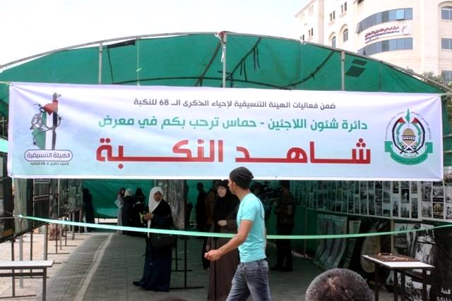 افتتحت دائرة شئون اللاجئين في حركة حماس، اليوم الثلاثاء، معرض "شاهد على النكبة"، في ساحة الجندي المجهول وسط مدينة غزة.