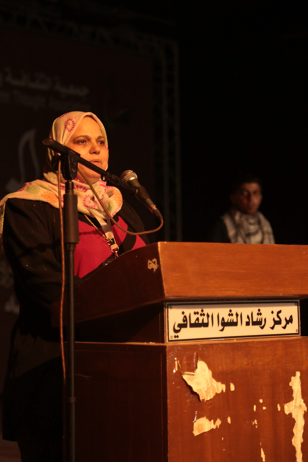 وقالت رئيس مجلس ادارة الجمعية نعيمة الشيخ على في كلمتها الافتتاحية: "تأتي هذه الفعالية في الذكرى الـ68 للنكبة والتهجير القسري لشعبنا الفلسطيني ما زال متواصلاً، وعناوين النكبة ما زالت واضحة وخير شاهد عليها، المخيم والأونروا والقرار الأممي 194، مشيرة الى انها تتجدد ايضا ولكن بأشكال ومضامين مختلفة مع كل عدوان جديد على غزة".