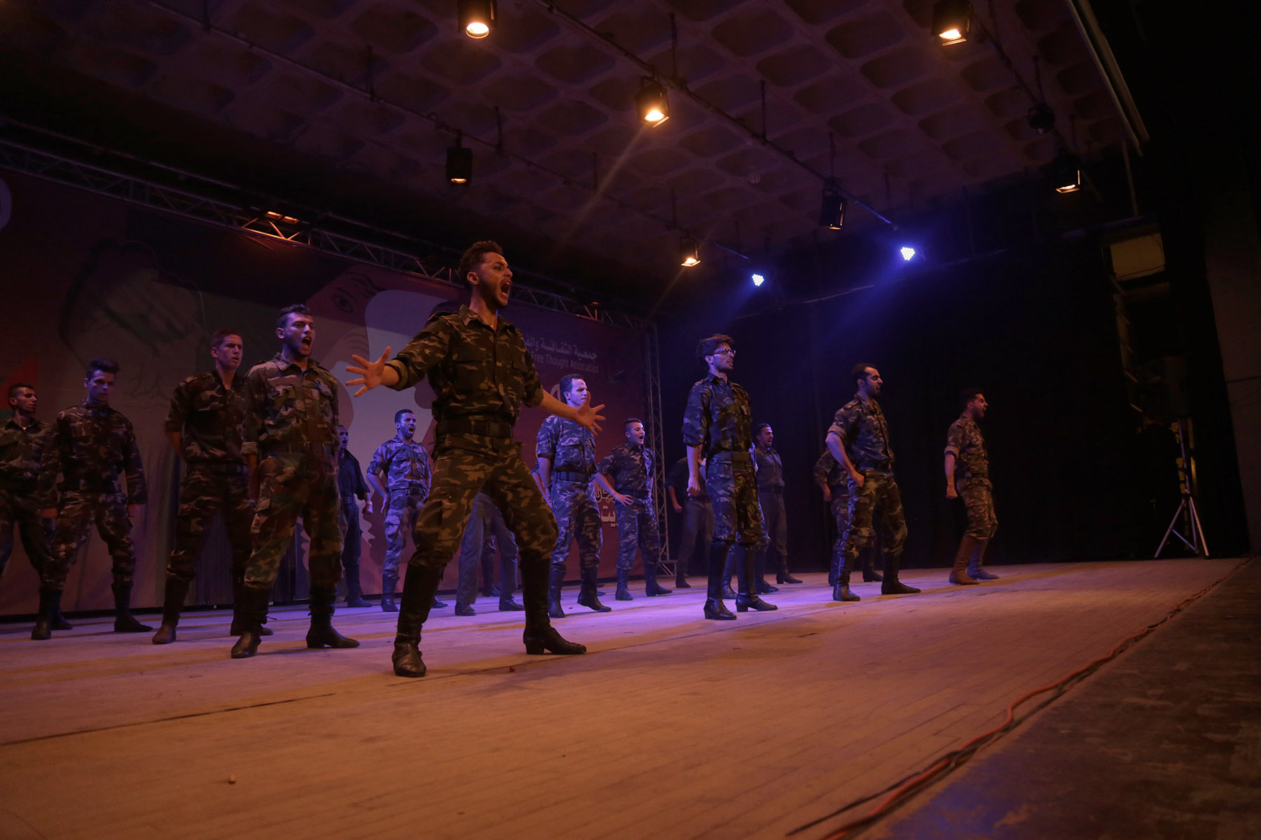 واختتمت الفعاليات بأوبريت فلكلوري غنائي "فينا شبه من بعض" حمل العديد من المضامين الوطنية التي أرخت لنضال الشعب الفلسطيني ودفاعه عن ثوابته الوطنية، منتقدا بشكل إبداعي استمرار الانقسام وانعكاسه السلبي في اضعاف الجهد الوطني والشعبي.