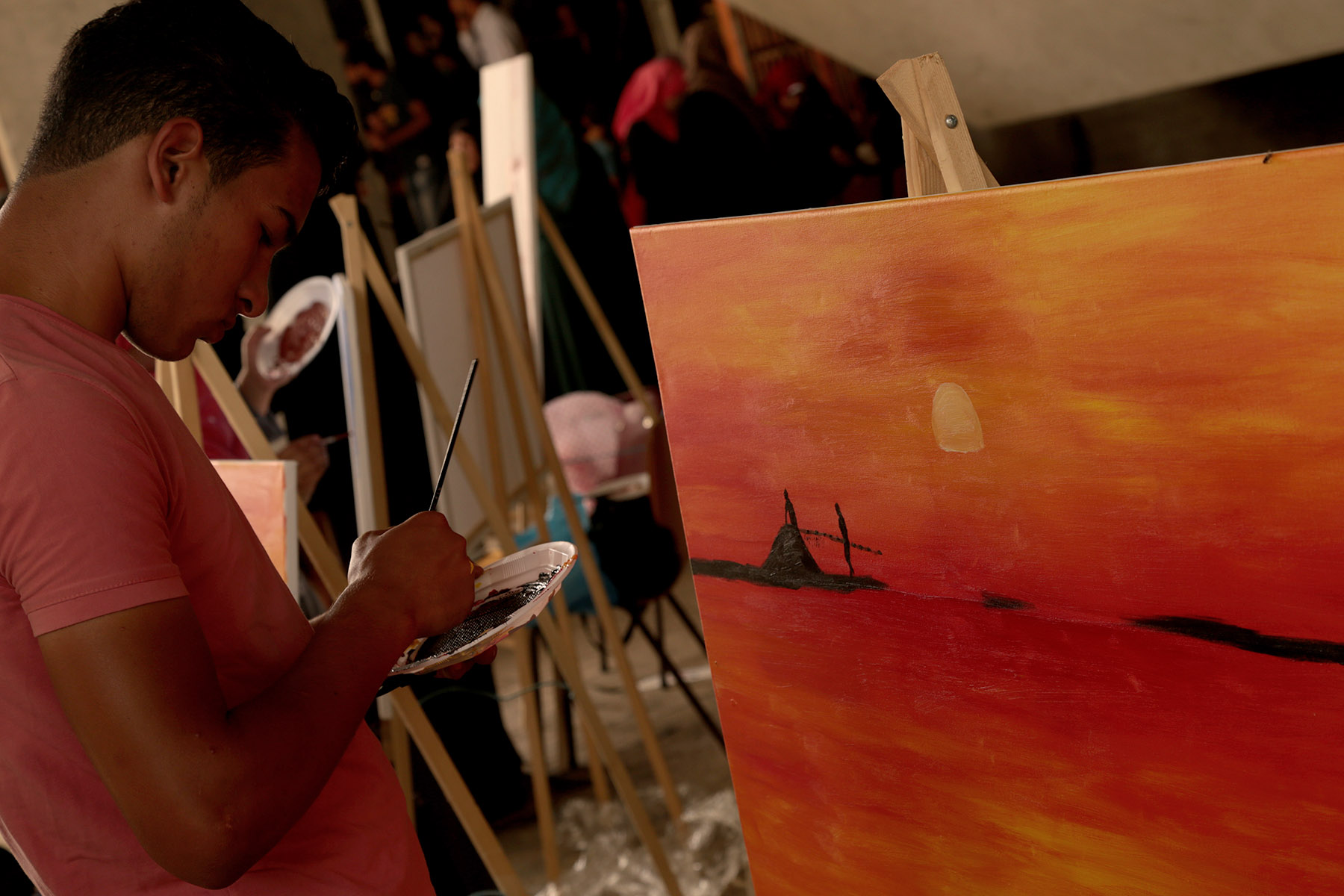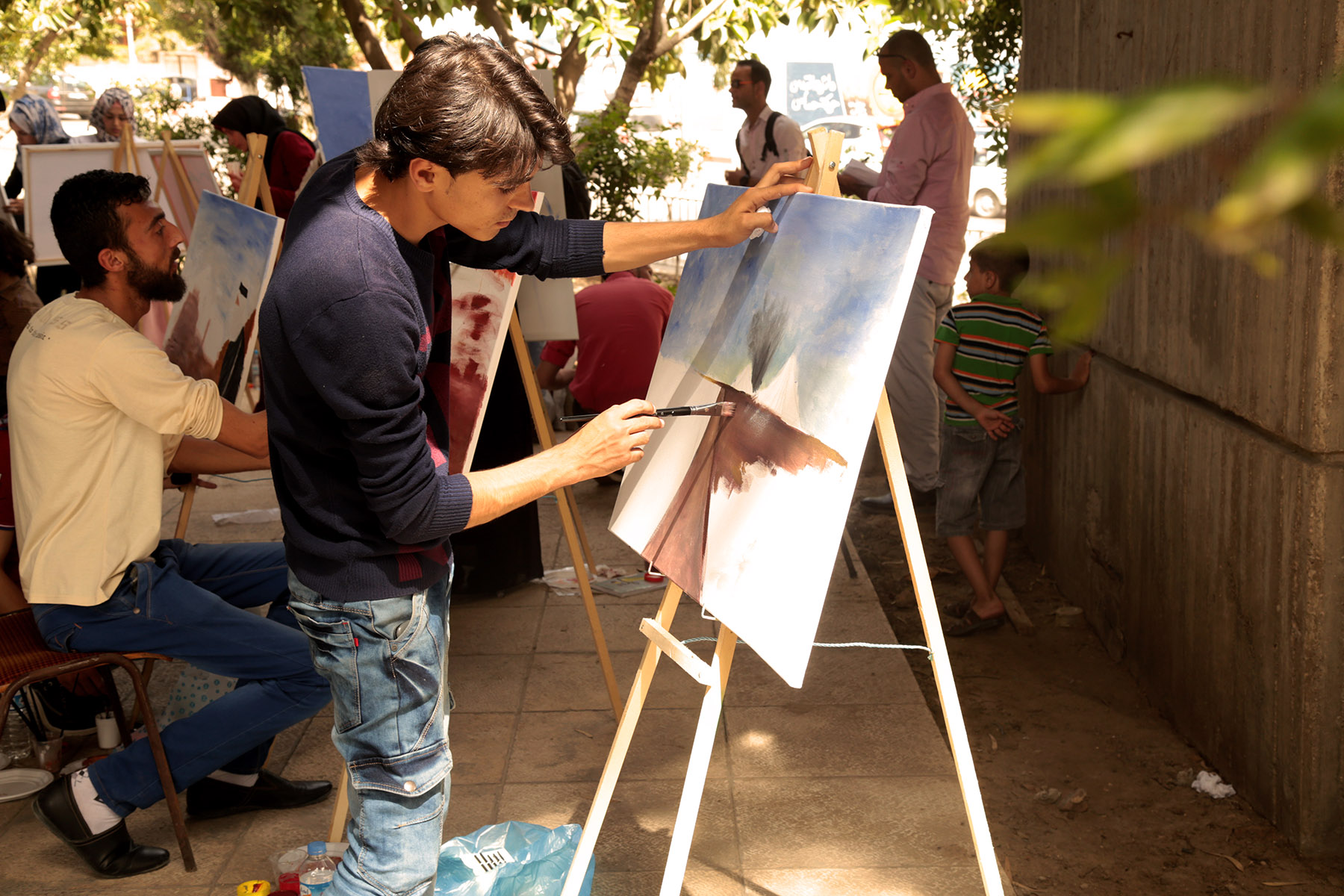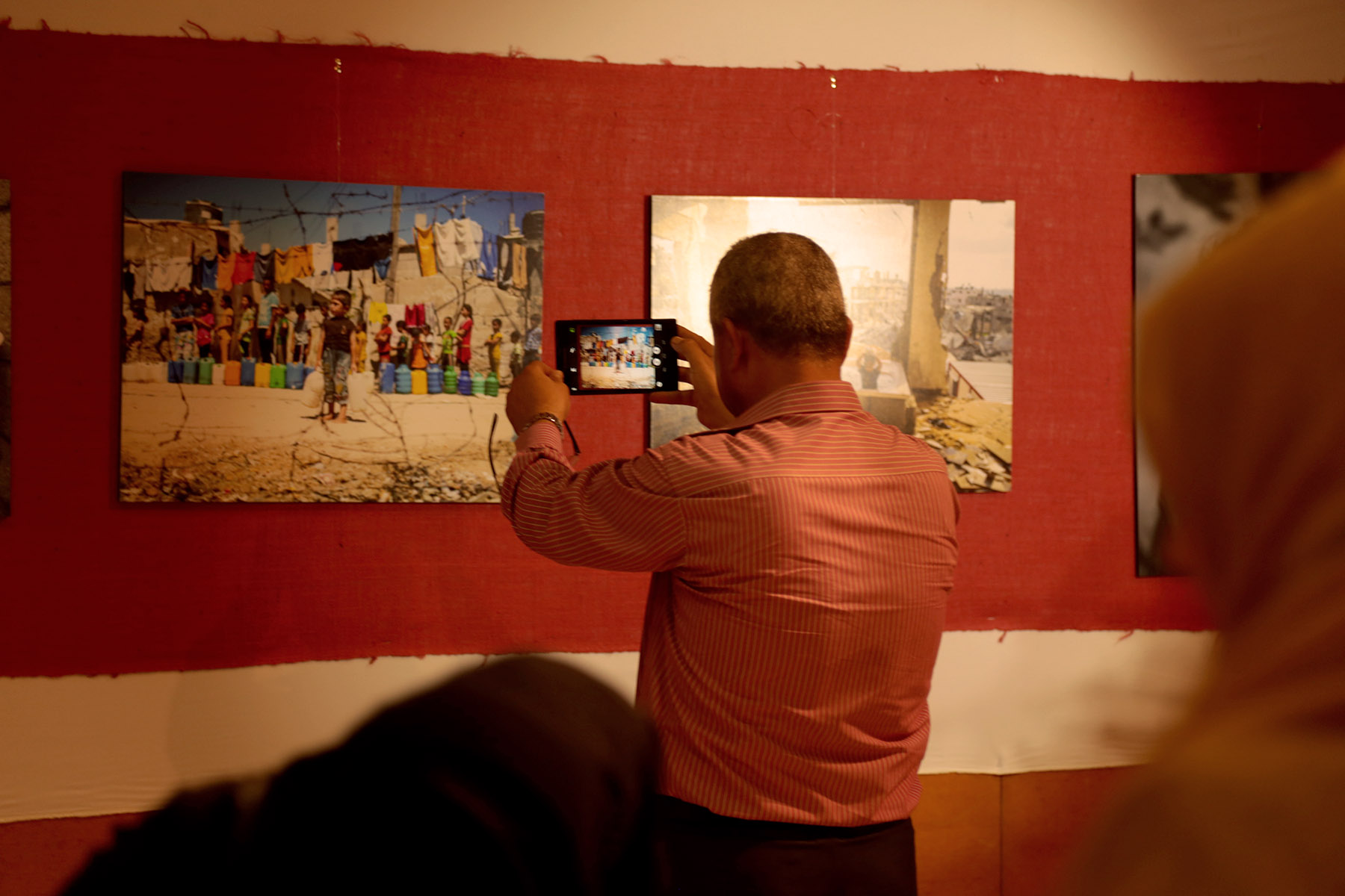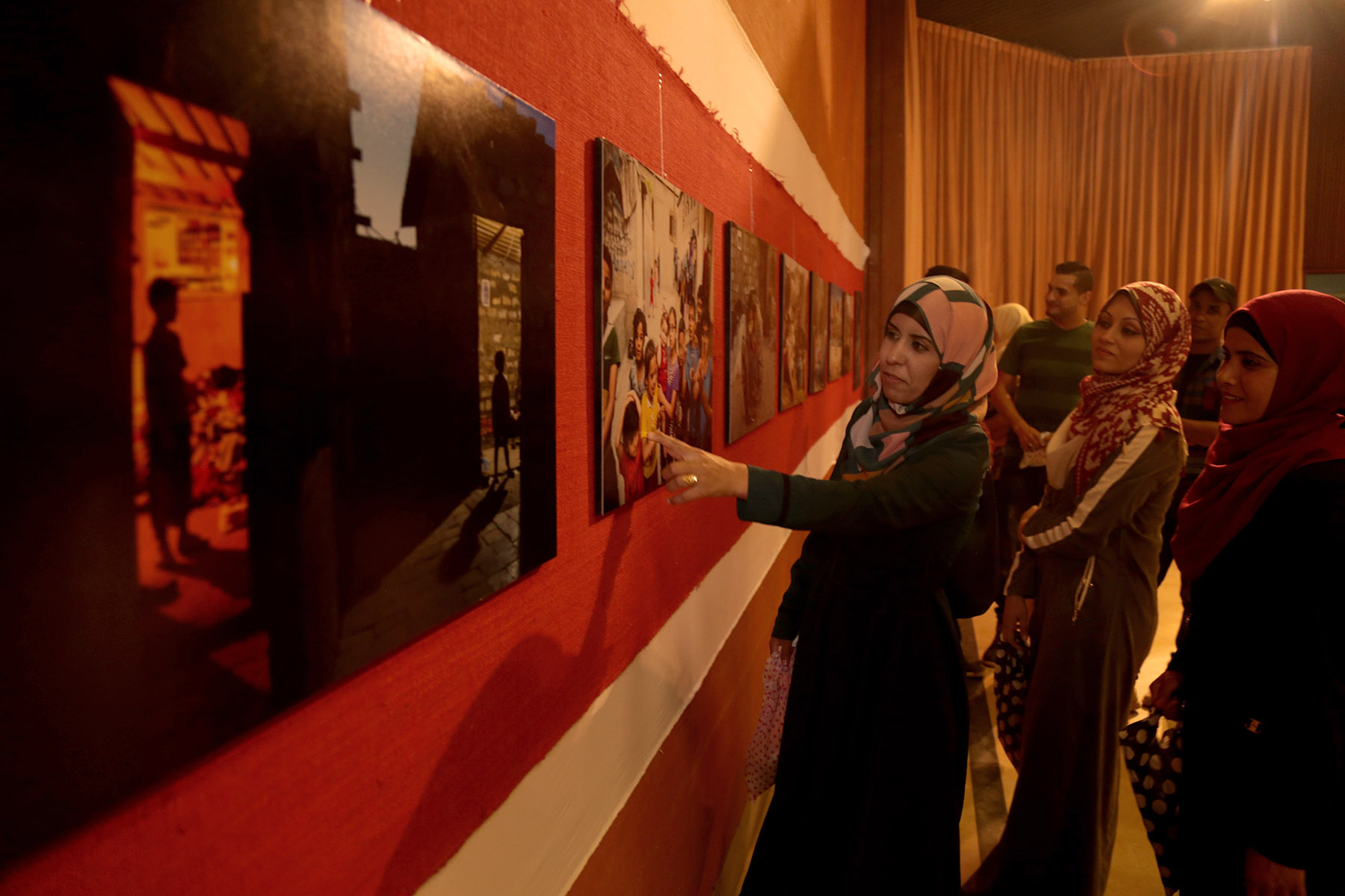 وافتتحت الفعاليات برسم حي أبدع خلاله ثلاثون فنان وفنانة تشكيلية برسم لوحات فنية لقراهم ومدنهم الاصلية التي هجر منها اجدادهم قسرا في الساحة الخارجية لمركز رشاد، فيما احتضنت القاعة الصغرى المعرض الفوتوغرافي "لاجئ"، للمصورين وسام نصار من غزة وفادى العاروري من الضفة، جسدا خلاله معاناة اللاجئين بالمخيمات بالضفة وغزة، وحلمهم النابض والمتجدد بالعودة لمدنهم المحتلة.