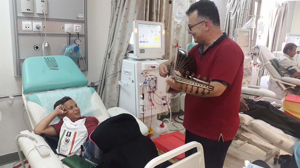 وجرى تجميع الأطفال في غرفة خاصة مع أهاليهم، وعزف مقطوعات موسيقية وغنائية ترفيهية من أداء الأستاذ حبيب الديك مدرب الموسيقى في المركز، كما تم التوجه إلى وحدة غسل الكلى بموسيقى وغناء تتناسب مع جميع الفئات العمرية المتواجدة هناك.