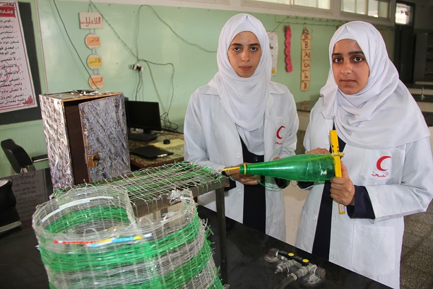 تمكنت الطالبتان ميسون عبد الحليم مسعود و إسراء منير أبو صافي في الصف الحادي عشر بمدرسة تل الزعتر الثانوية الحكومية للبنات بمديرية التربية والتعليم في شمال غزة، من ابتكار جهاز يدوي قادر على تحويل المخلفات البلاستيكية إلى خيوط بلاستيكية يمكن الاستفادة منها في صناعة العديد من الأدوات وإدخالها في جملة من المستلزمات في الحياة اليومية.