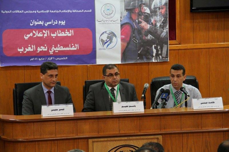 وبيّن هؤلاء خلال يومٍ دراسي عقده مجلس العلاقات الدولية بالتعاون مع قسم الصحافة والإعلام بالجامعة الإسلامية بمقر الأخيرة، ضعف الخطاب الموجه للغرب، لافتين إلى أن هناك جهوداً تبذل لمحاولة تحسينه. وأوصوا بضرورة تسليط الضوء على القصص الإنسانية التي من شأنها أن تجلب الدعم الدولي وتركز على الجانب الإنساني، منوهين إلى أهمية الصور الصحفية وما أحدثته من تعاطف دولي خلال فترات الحروب التي شهدها قطاع غزة.