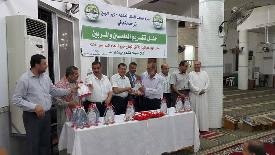 نظمت أسرة مسجد البلد القديم في دير البلح وسط القطاع مساء الأحد حفلاَ لتكريم المعلمين والمربين تقديراَ لجهودهم خلال العام المنصرم.